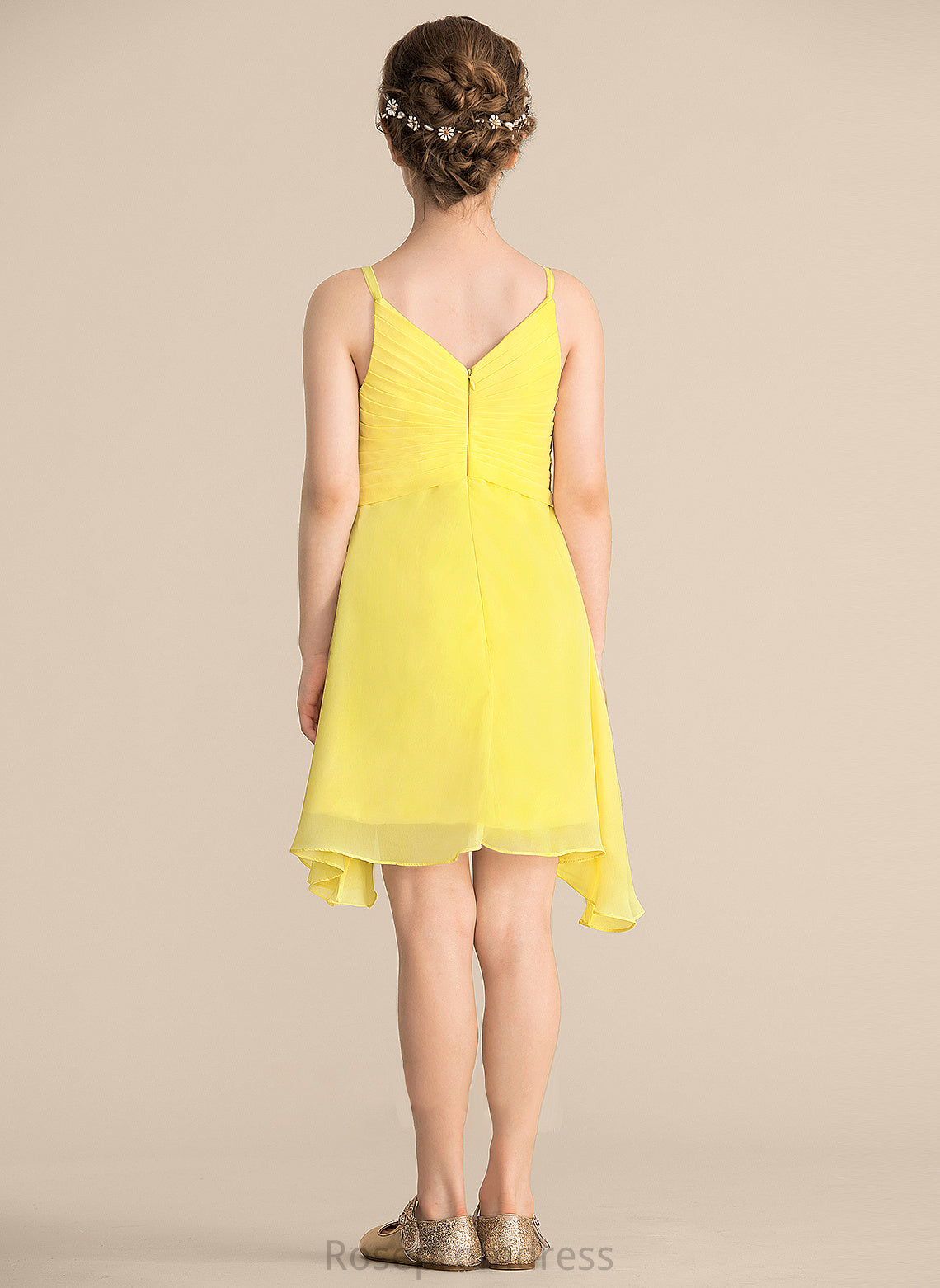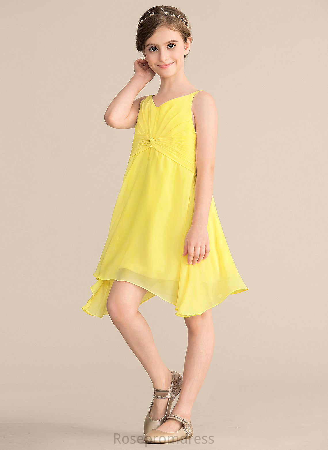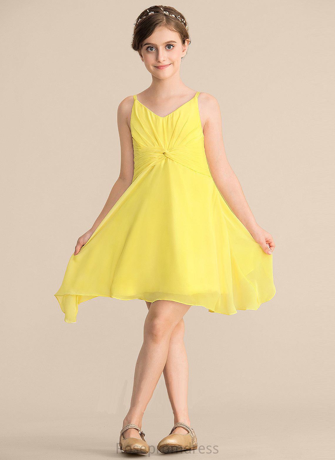 Ruffle Knee-Length With A-Line Chiffon Junior Bridesmaid Dresses Angelica V-neck