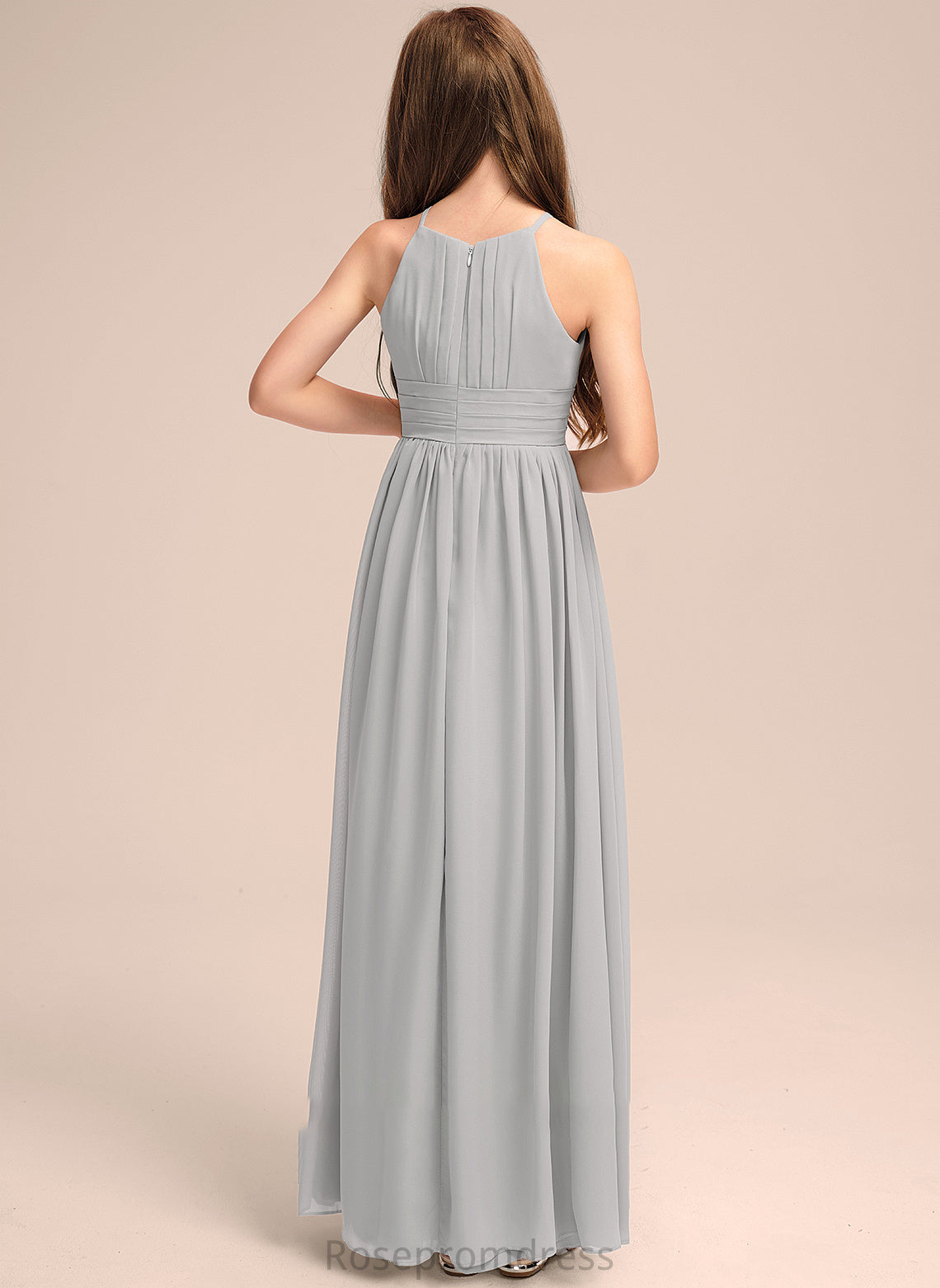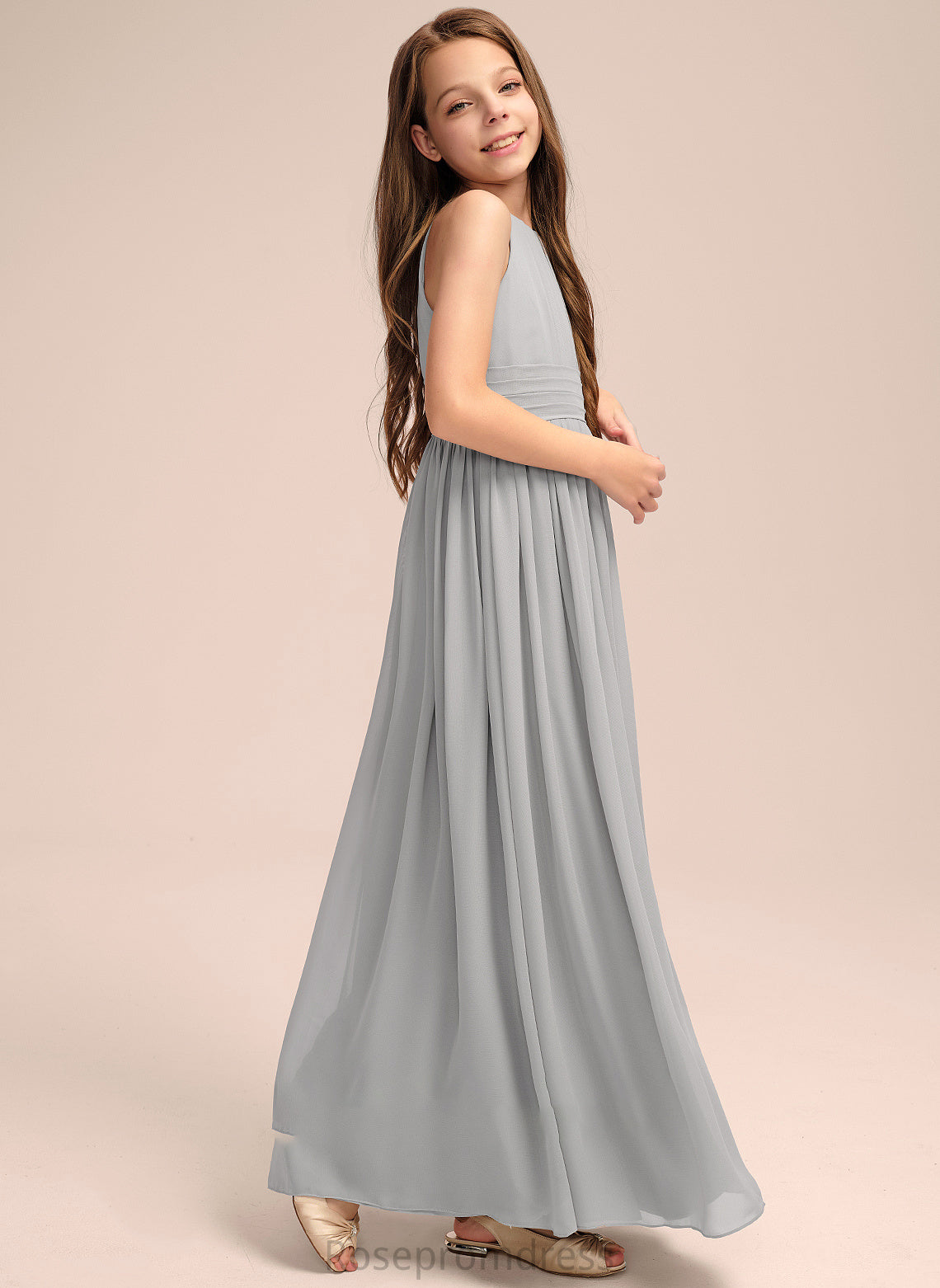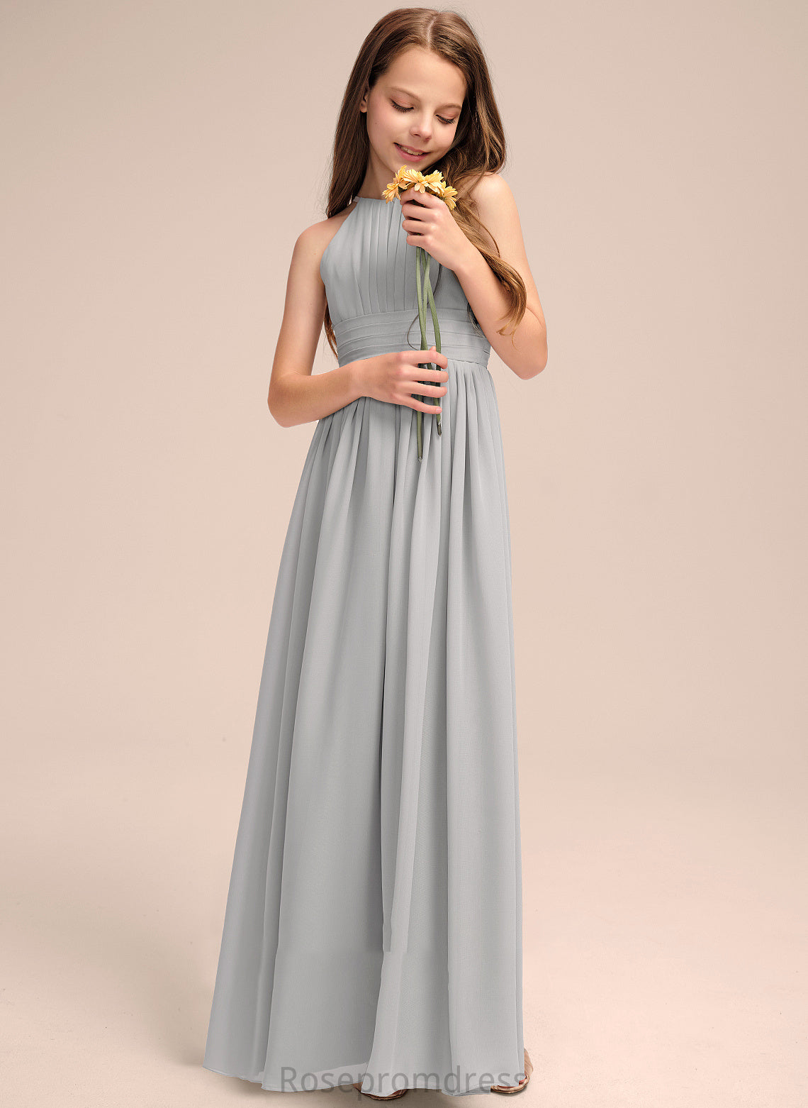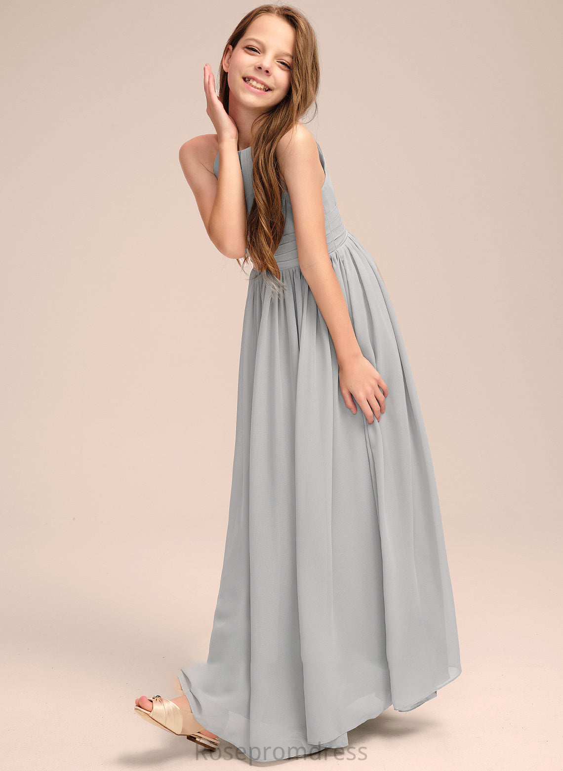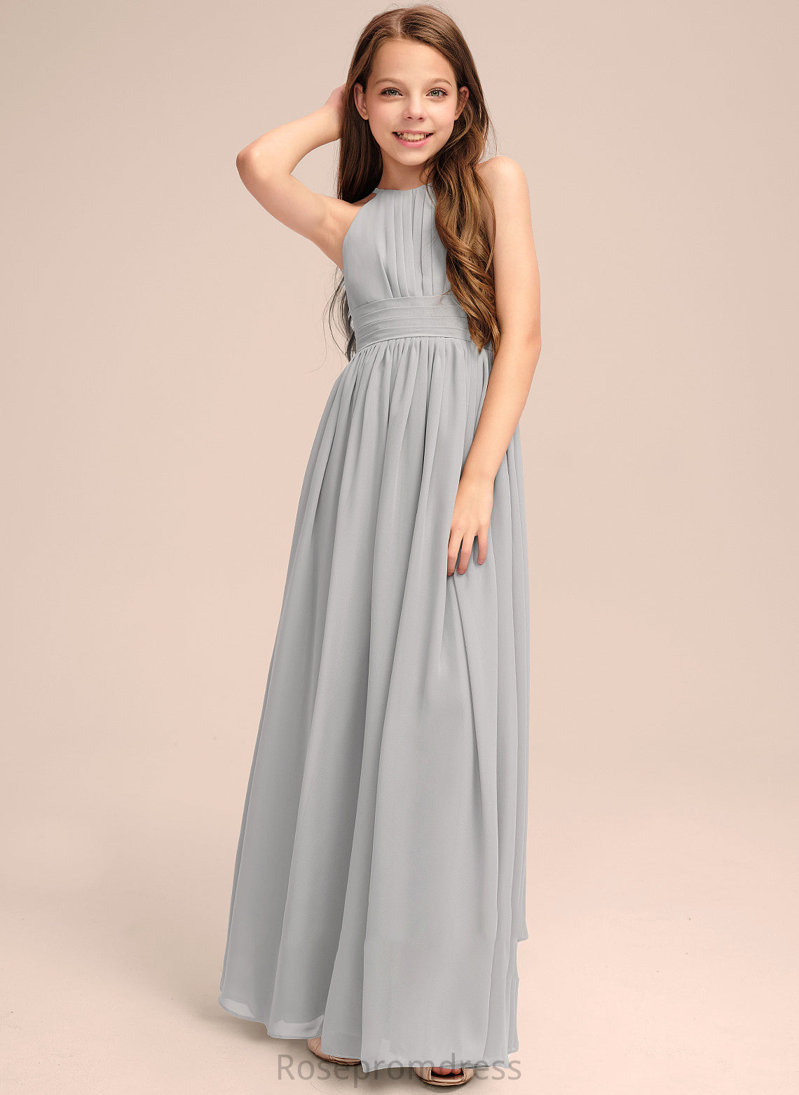 Ruffle Neck A-Line Aliya Chiffon Scoop With Floor-Length Junior Bridesmaid Dresses