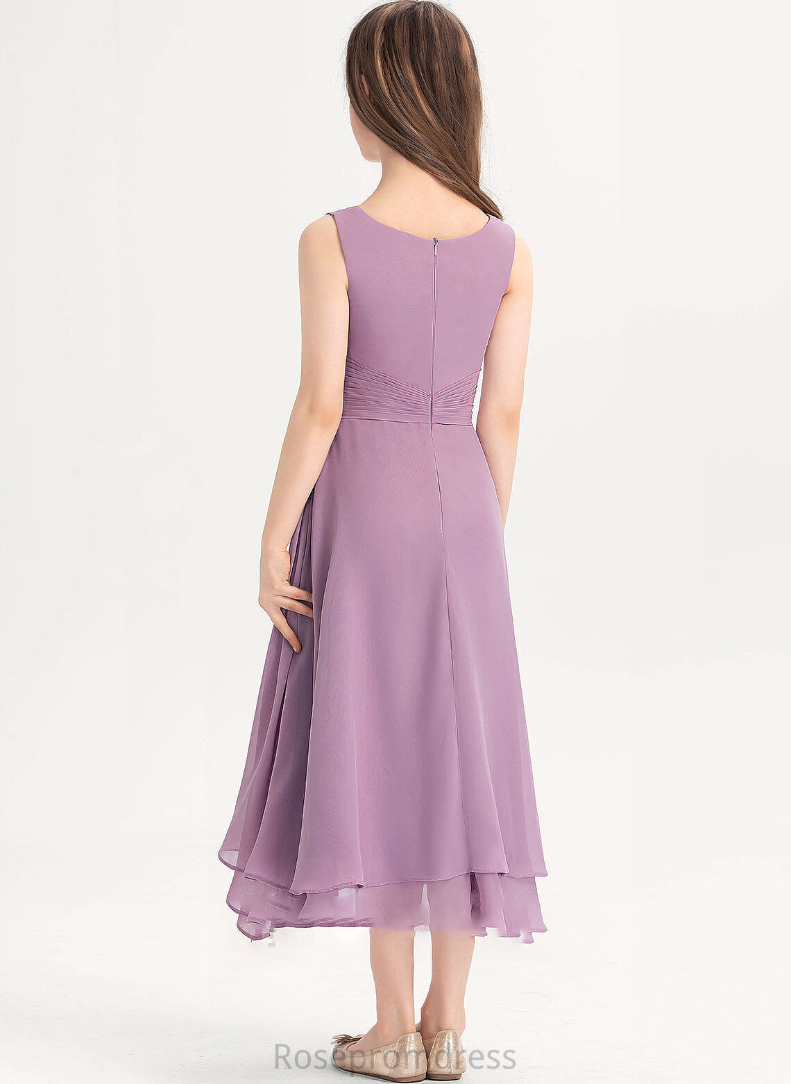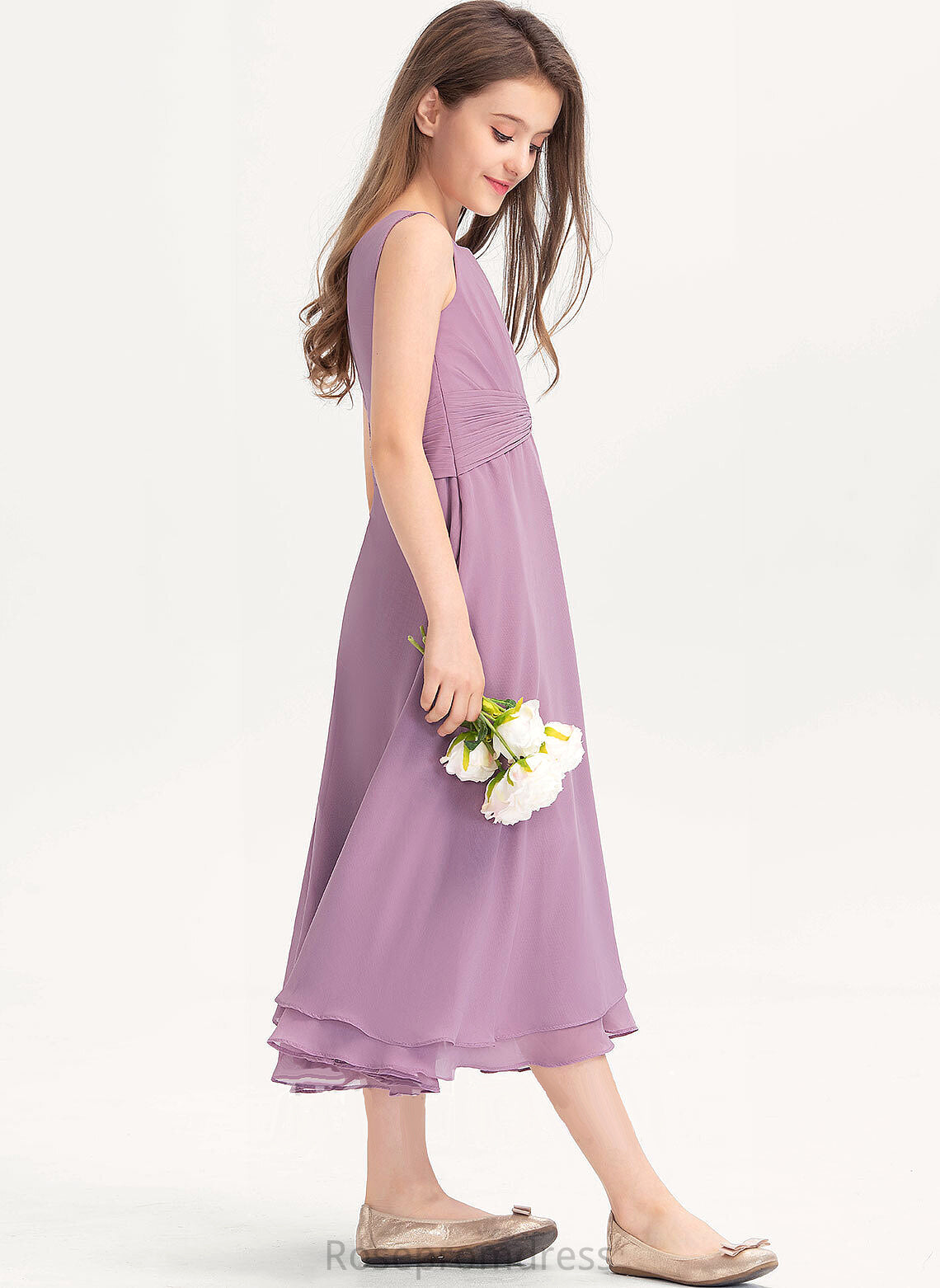 Ruffle Scoop Neck Chiffon Junior Bridesmaid Dresses Tea-Length Aryanna With A-Line