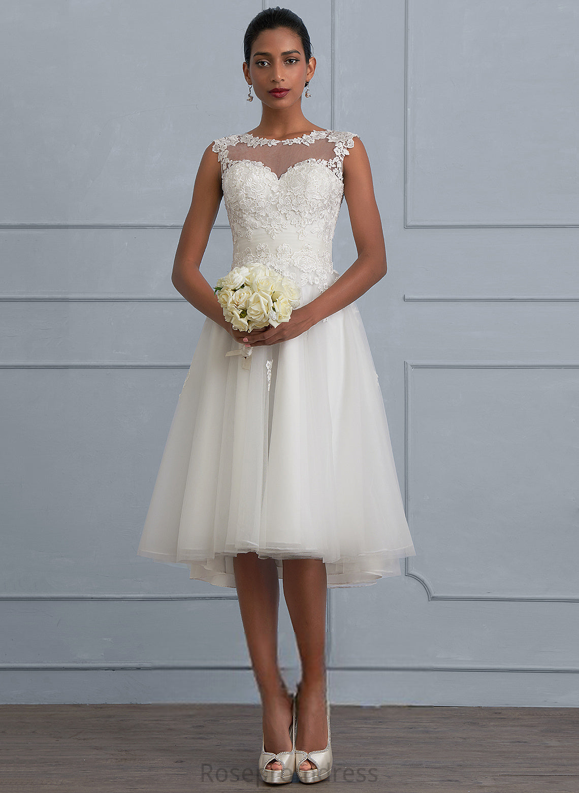 Ruffle Wedding Cailyn A-Line Illusion Lace Tulle Asymmetrical With Dress Wedding Dresses
