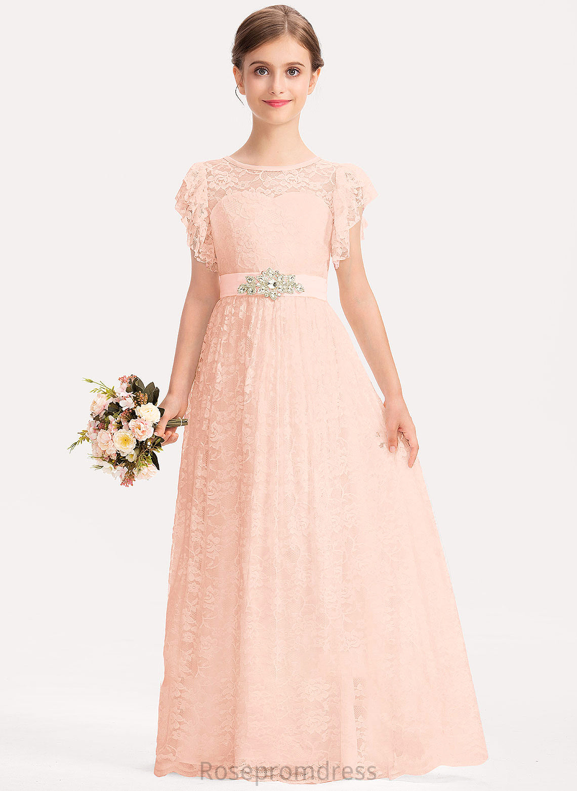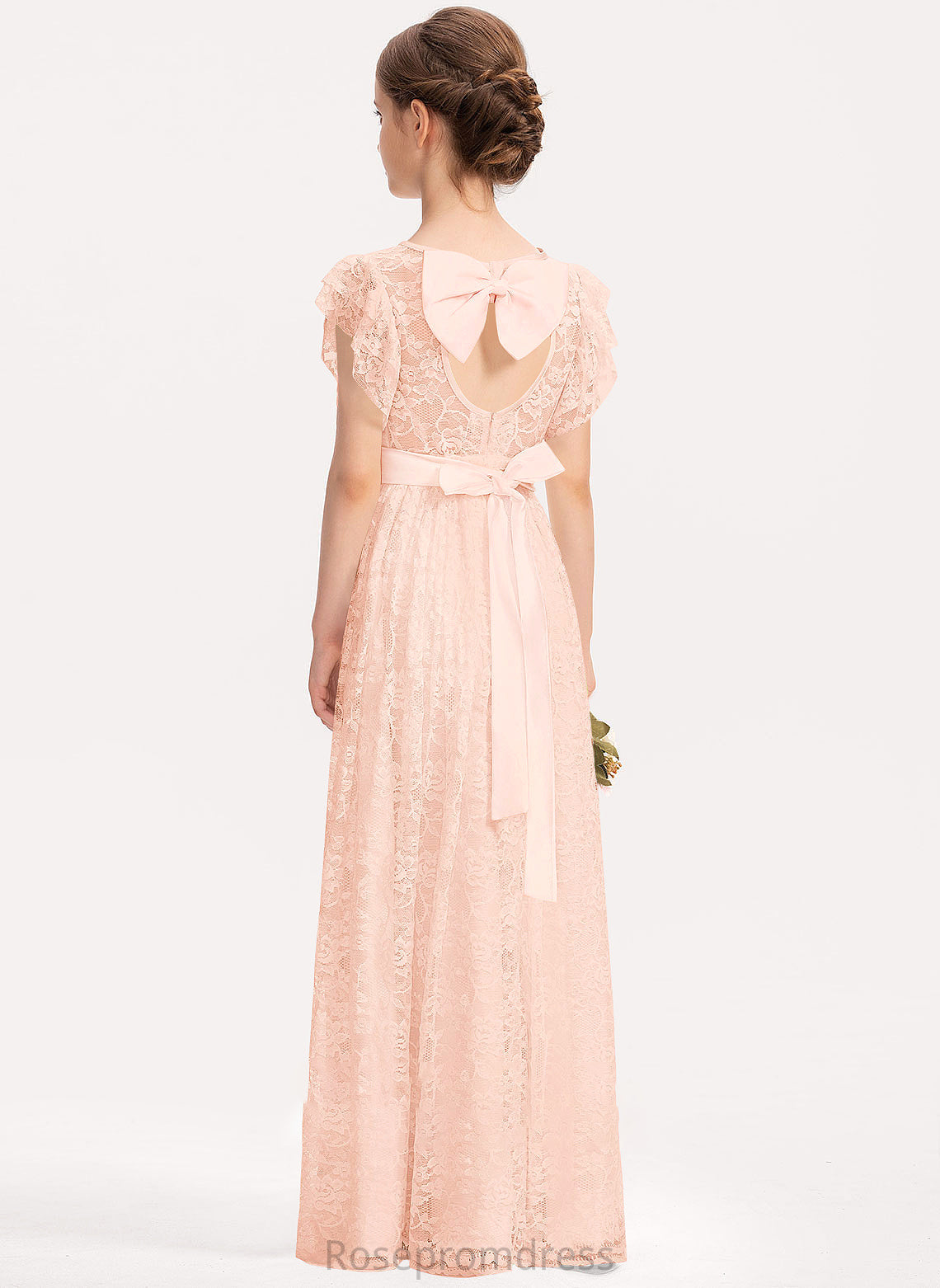 Ruffles Cascading Bow(s) With Lace Neck A-Line Scoop Junior Bridesmaid Dresses Beading Floor-Length Evelin