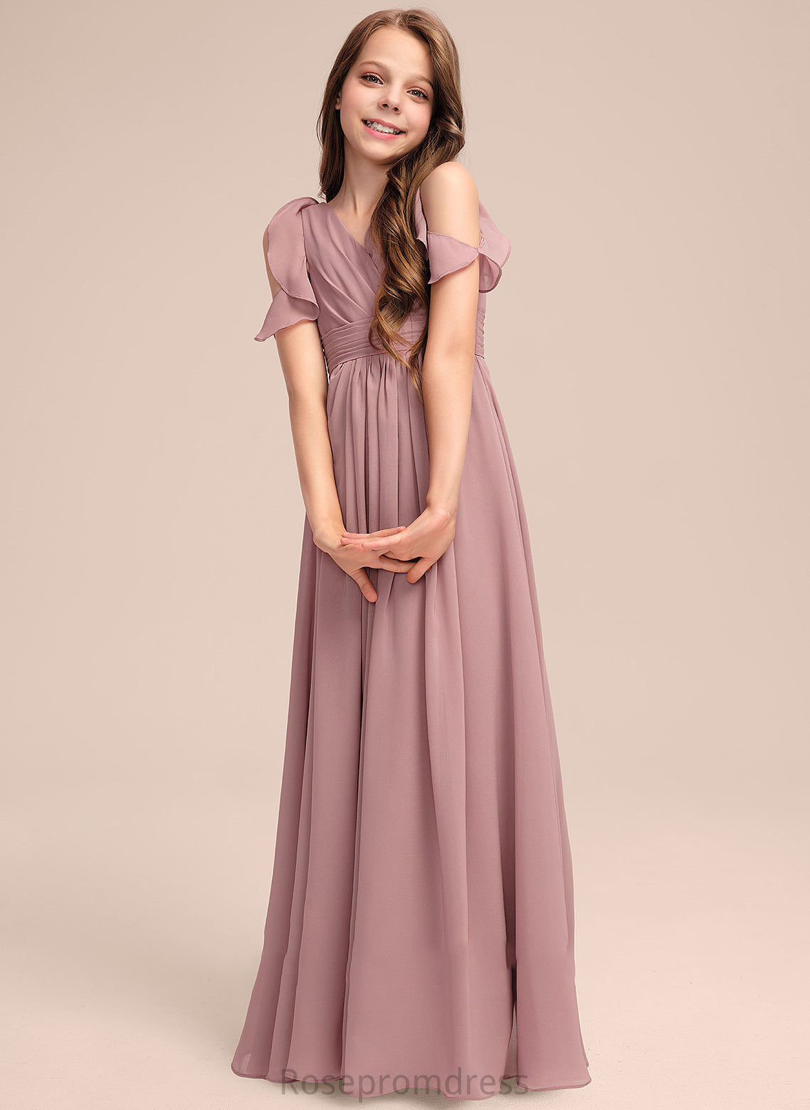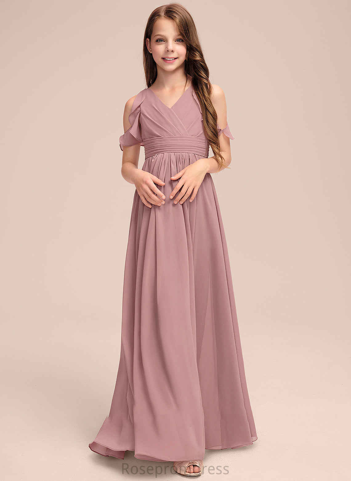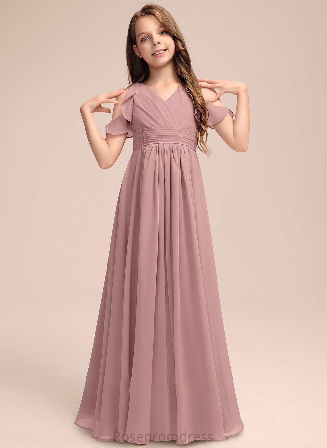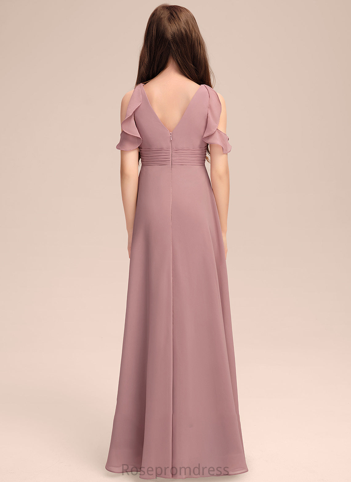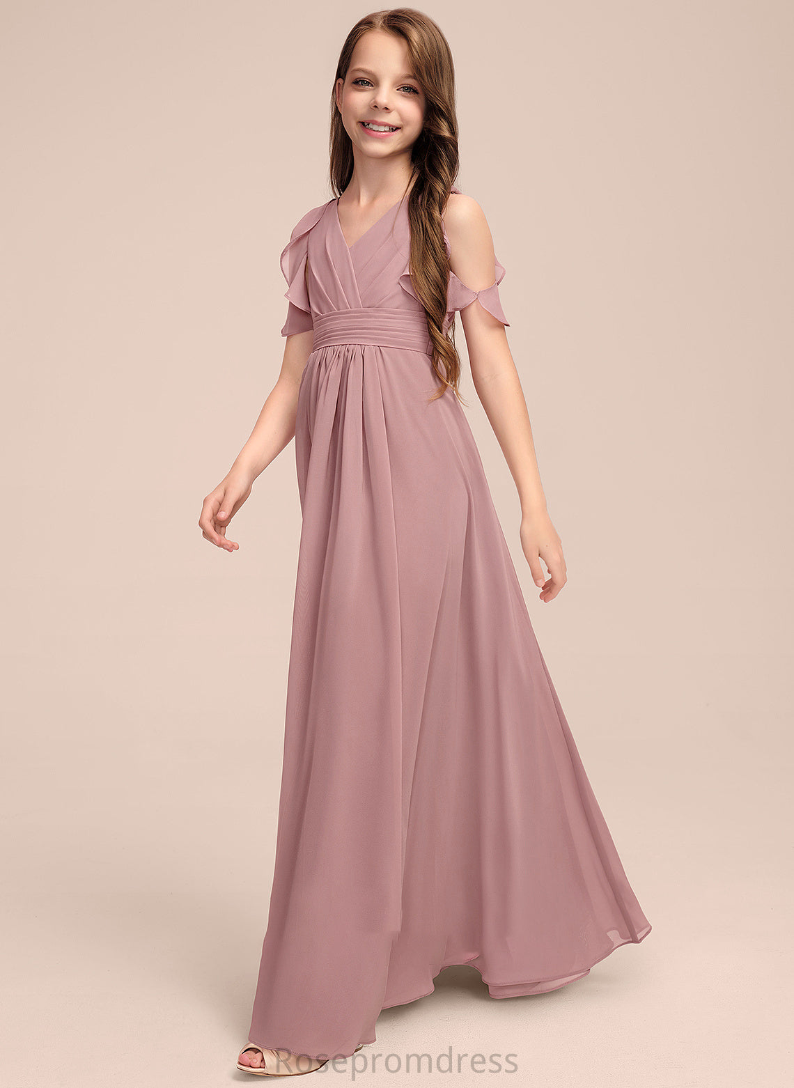 Ruffles V-neck A-Line Cascading Kinley Junior Bridesmaid Dresses Chiffon Floor-Length With