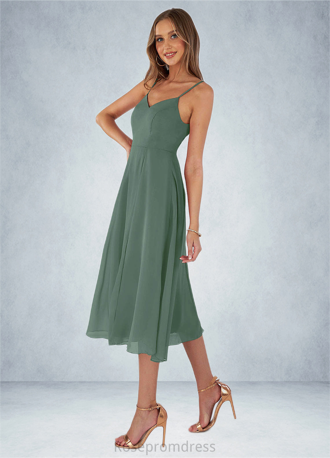 Sage A-Line Chiffon Tea-Length Dress SRSP0019628