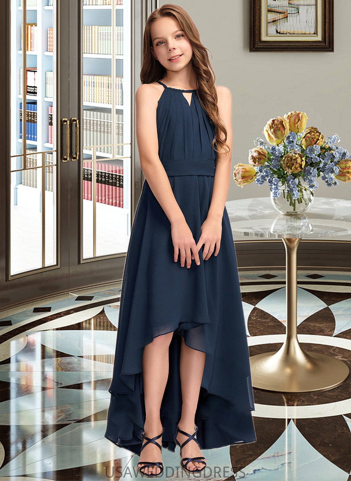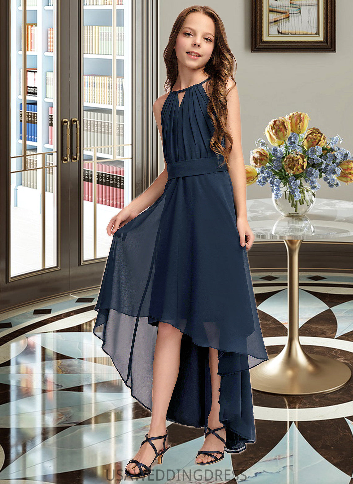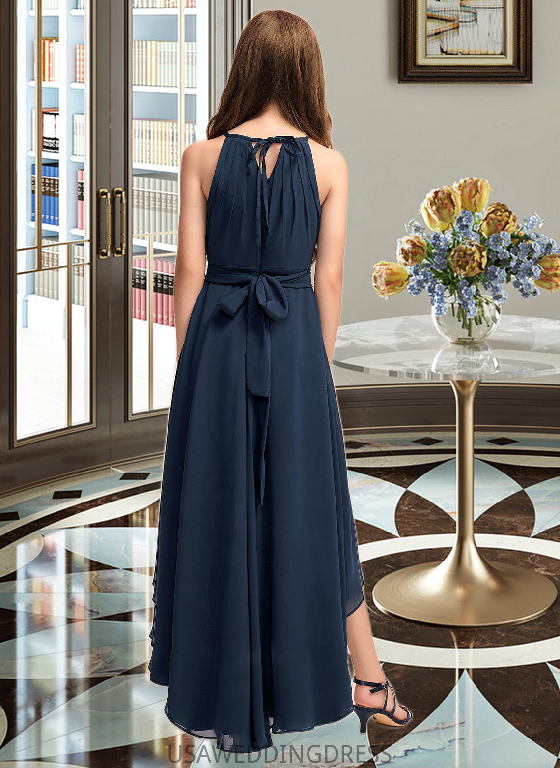 Sally A-Line Scoop Neck Asymmetrical Chiffon Junior Bridesmaid Dress With Bow(s) Ruffles DSP0013445