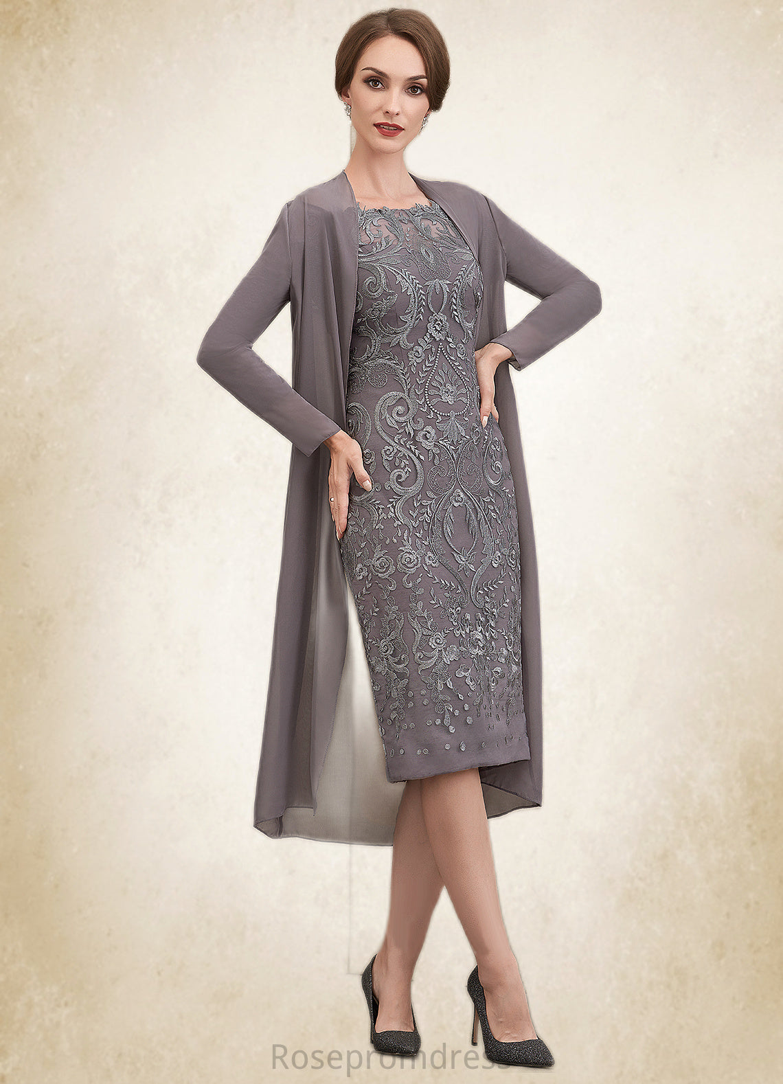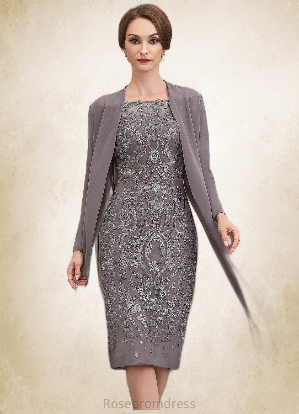 Sally Sheath/Column Off-the-Shoulder Knee-Length Lace Mother of the Bride Dress SRS126P0014595