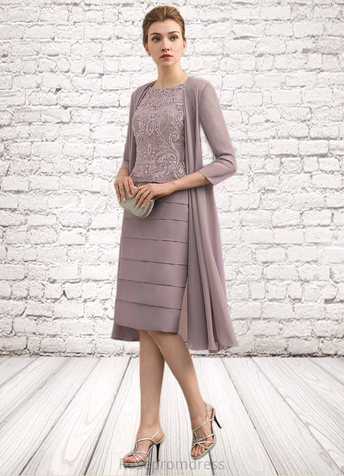 Sally Sheath/Column Scoop Neck Knee-Length Chiffon Lace Mother of the Bride Dress With Beading Sequins SRS126P0014699