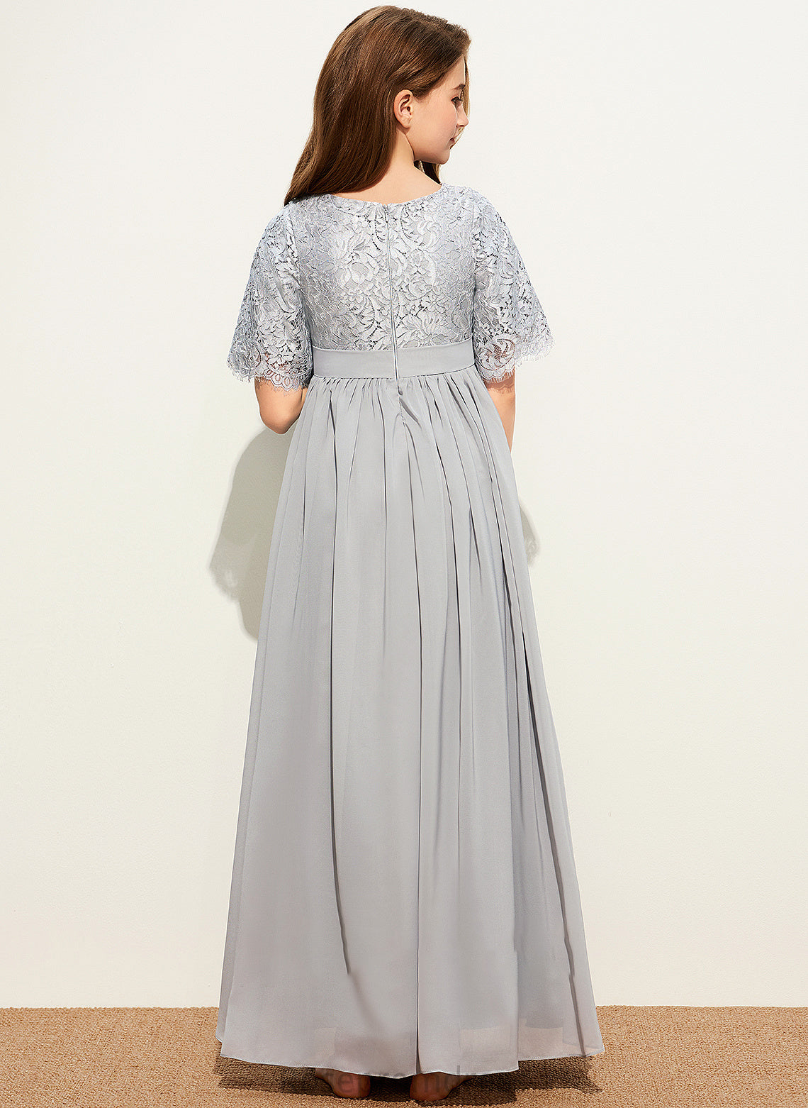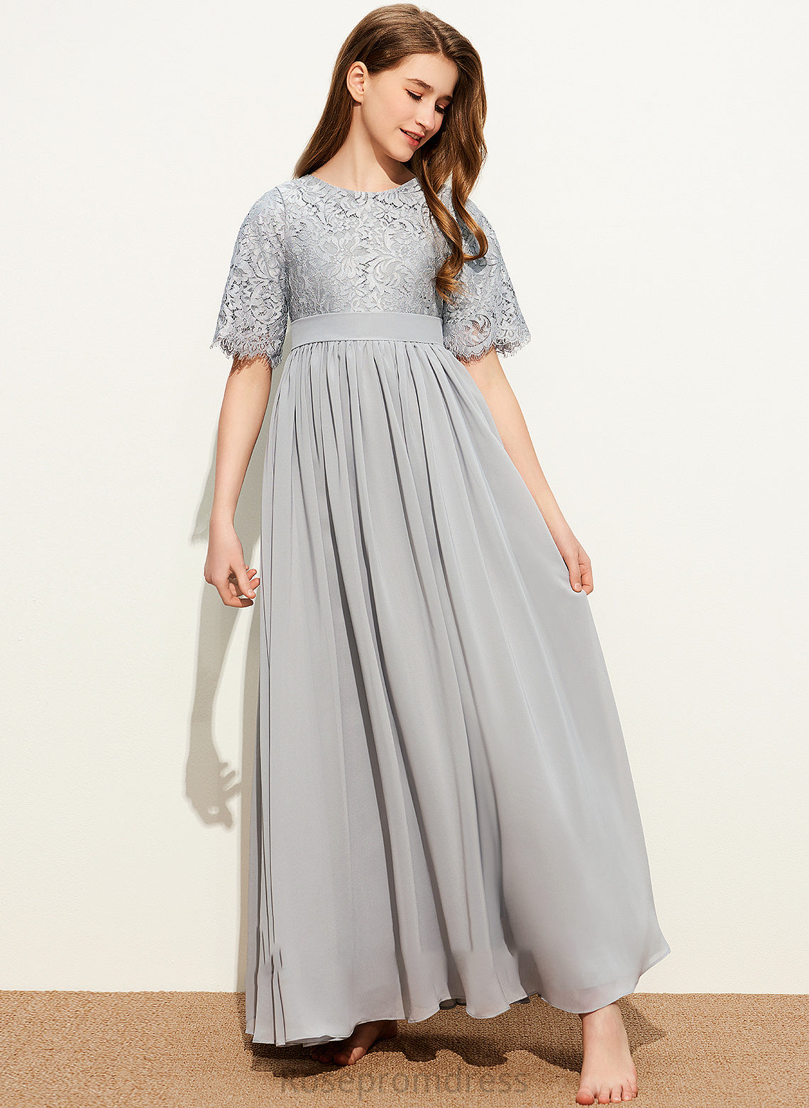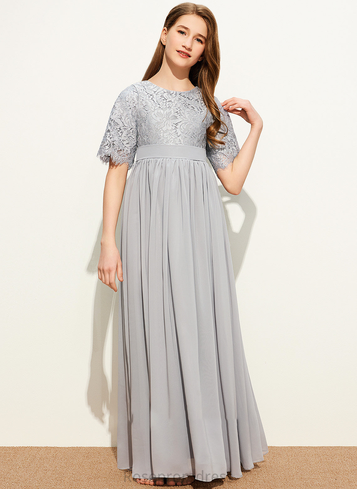 Salma Junior Bridesmaid Dresses A-LineScoopNeckFloor-LengthChiffonLaceJuniorBridesmaidDress#253700