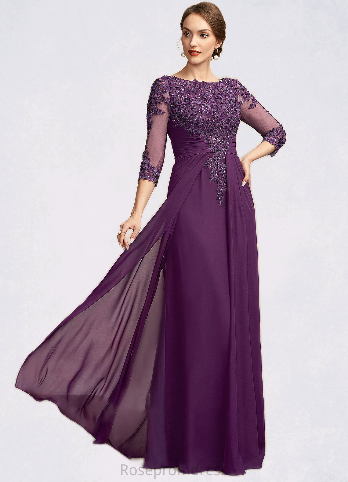 Salome A-Line Scoop Neck Floor-Length Chiffon Lace Mother of the Bride Dress With Beading Sequins SRS126P0014738