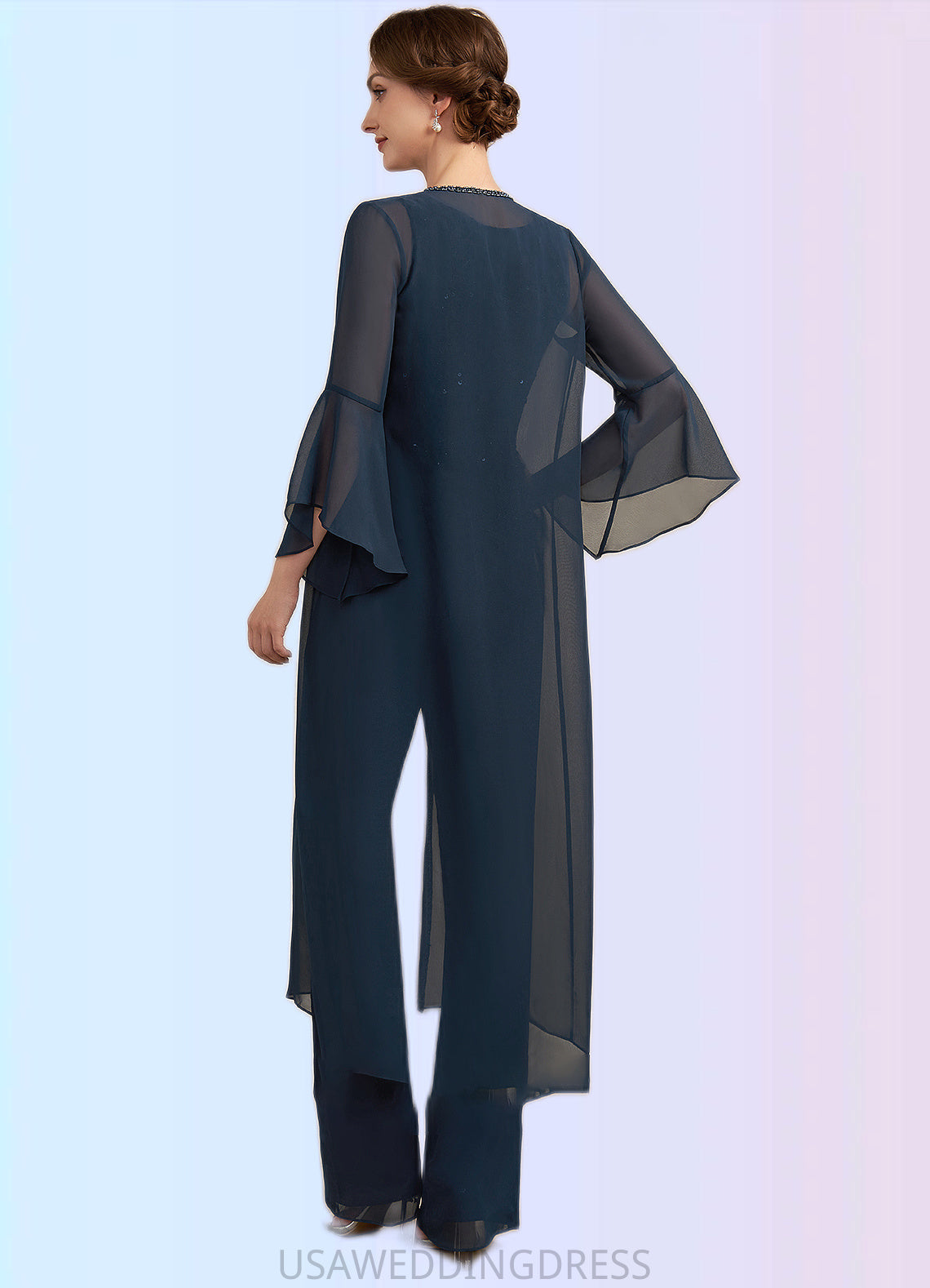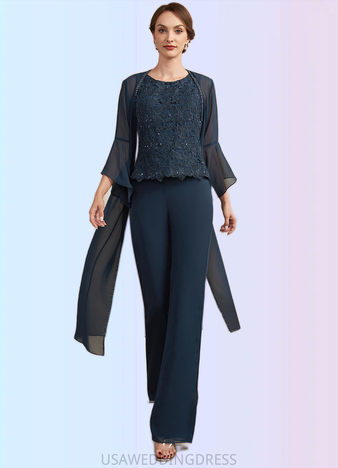 Sam Jumpsuit/Pantsuit Scoop Neck Floor-Length Chiffon Lace Mother of the Bride Dress With Beading Sequins DS126P0014910
