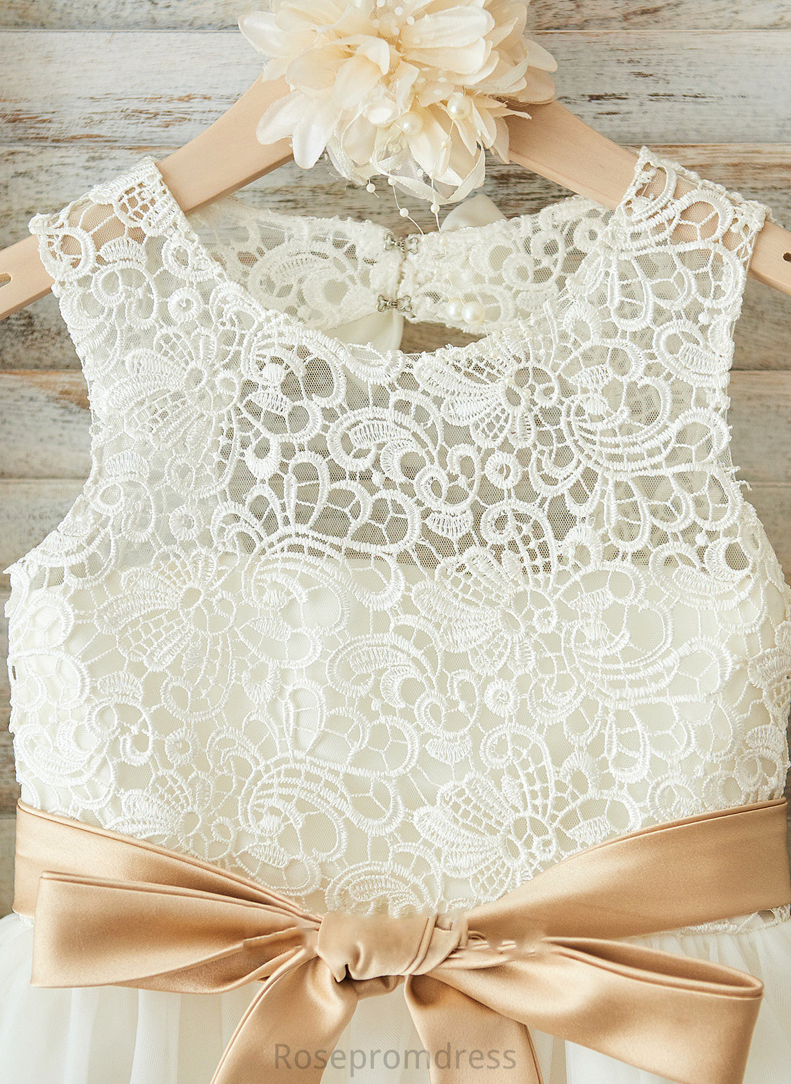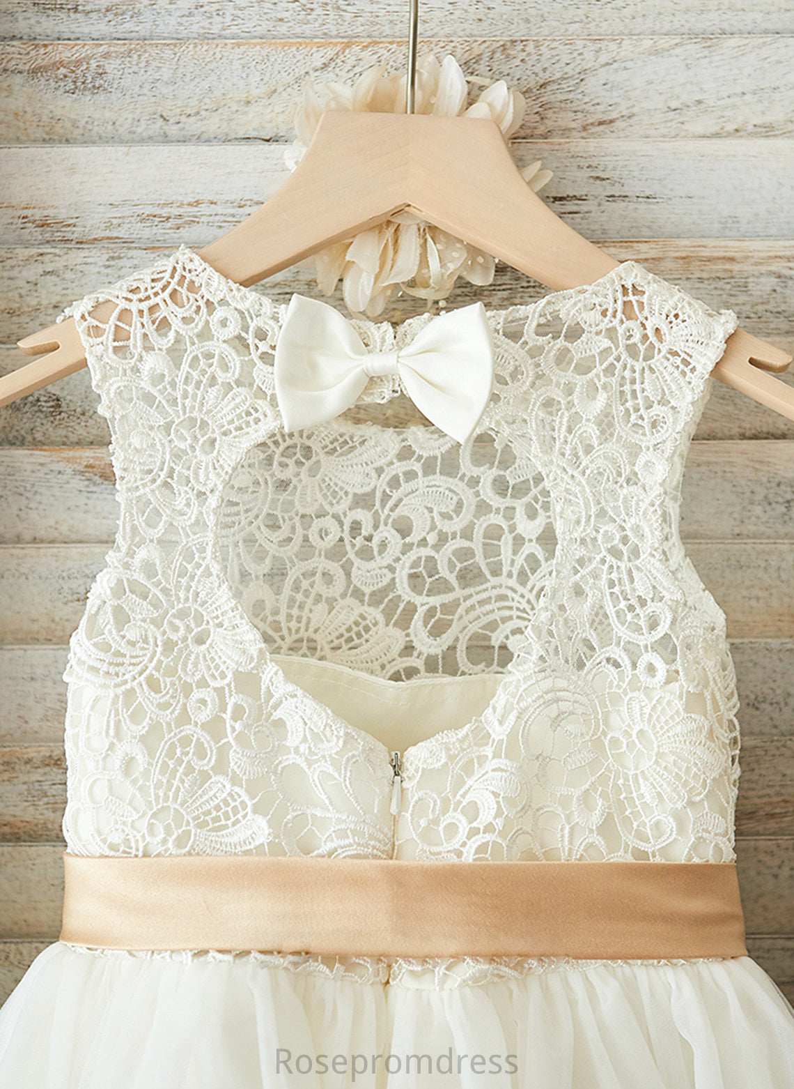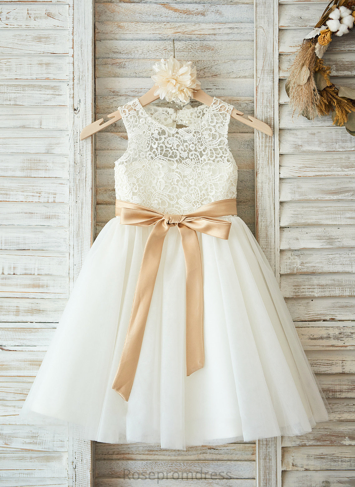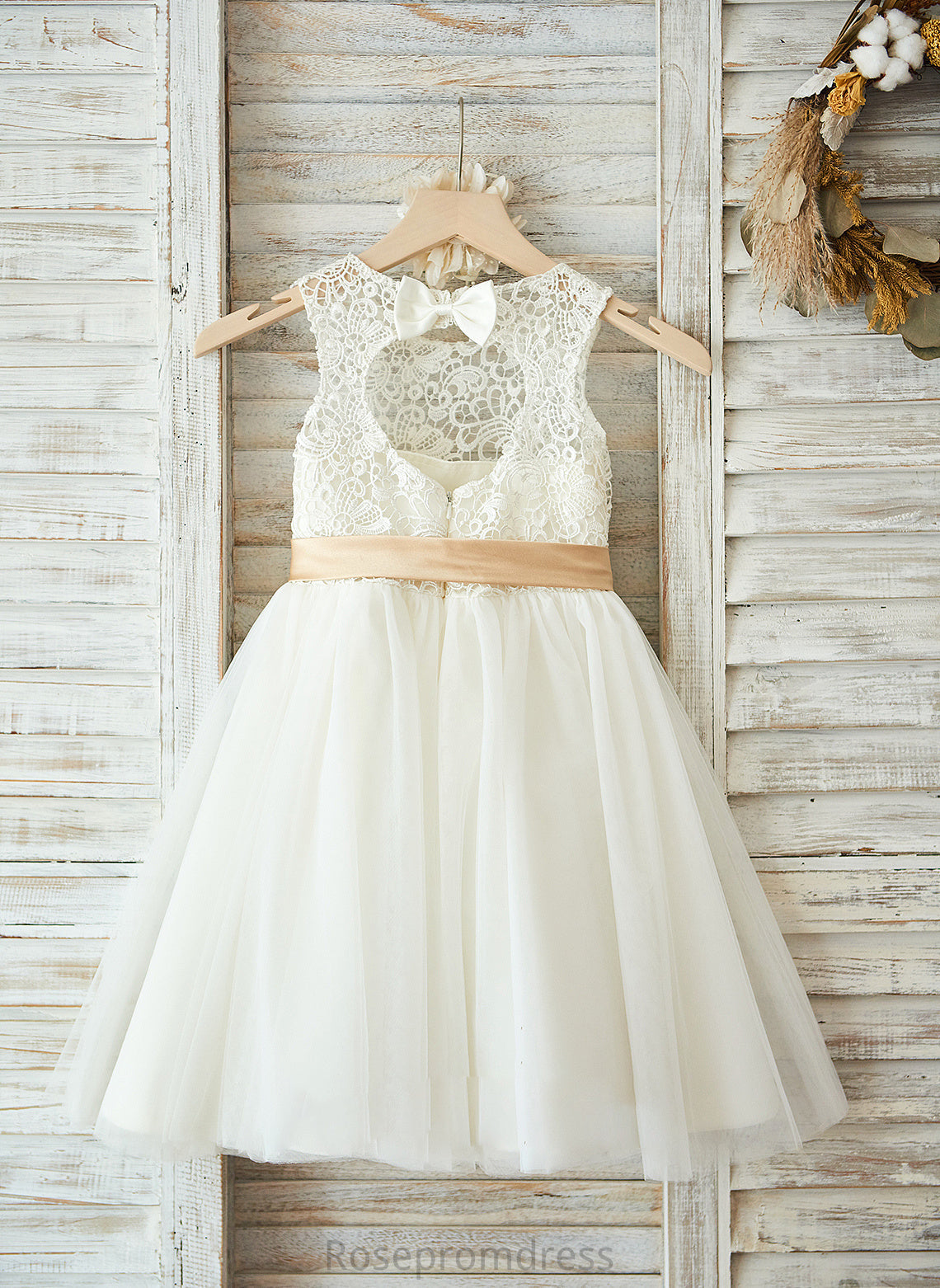 Sash Bow(s) Knee-Length Tulle Reyna A-Line Neck Scoop Junior Bridesmaid Dresses With