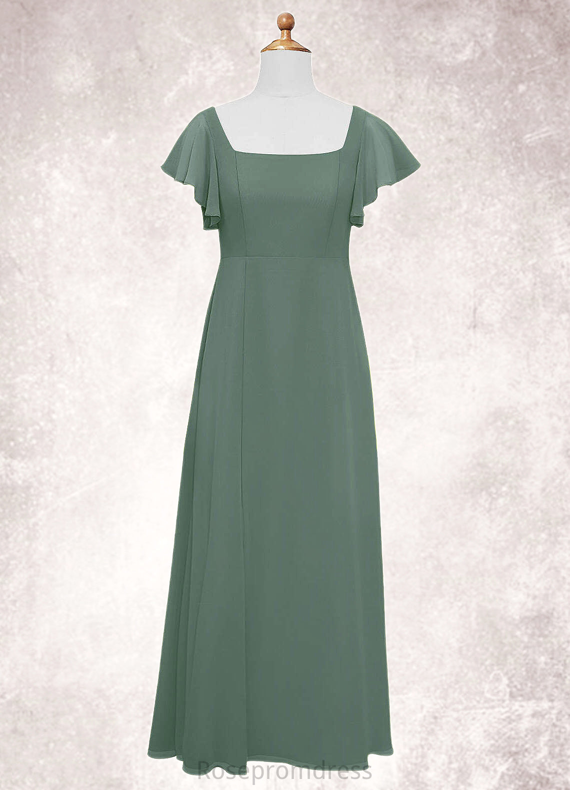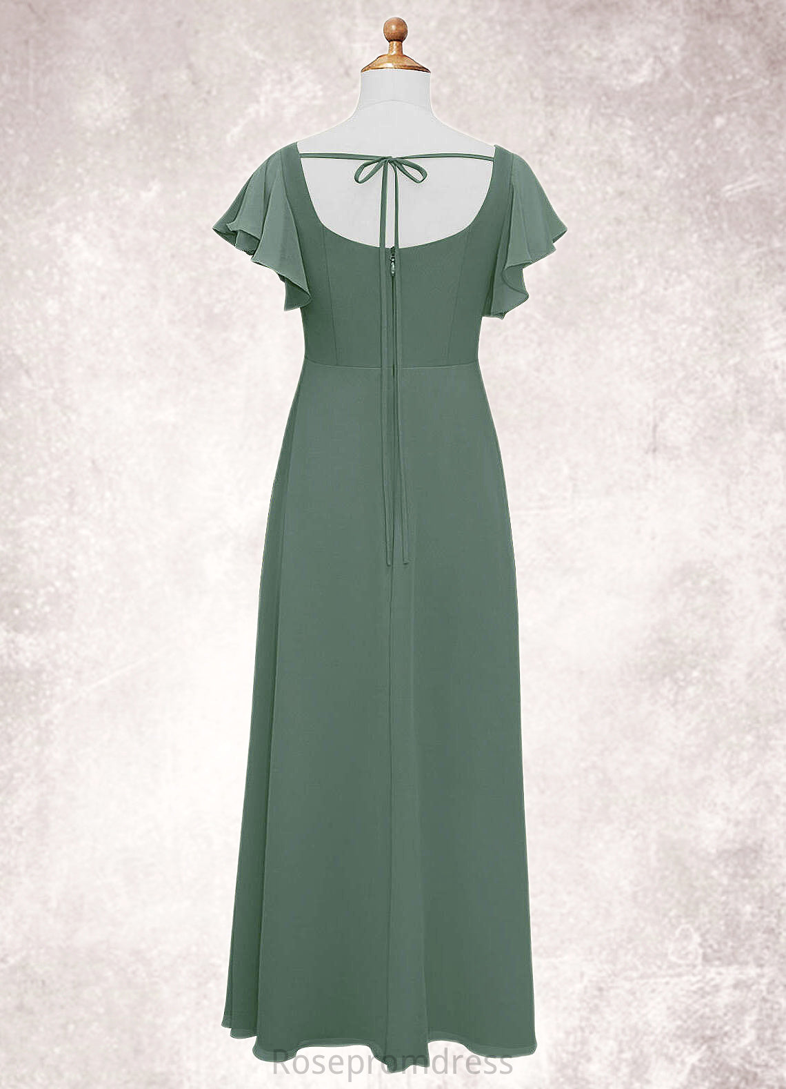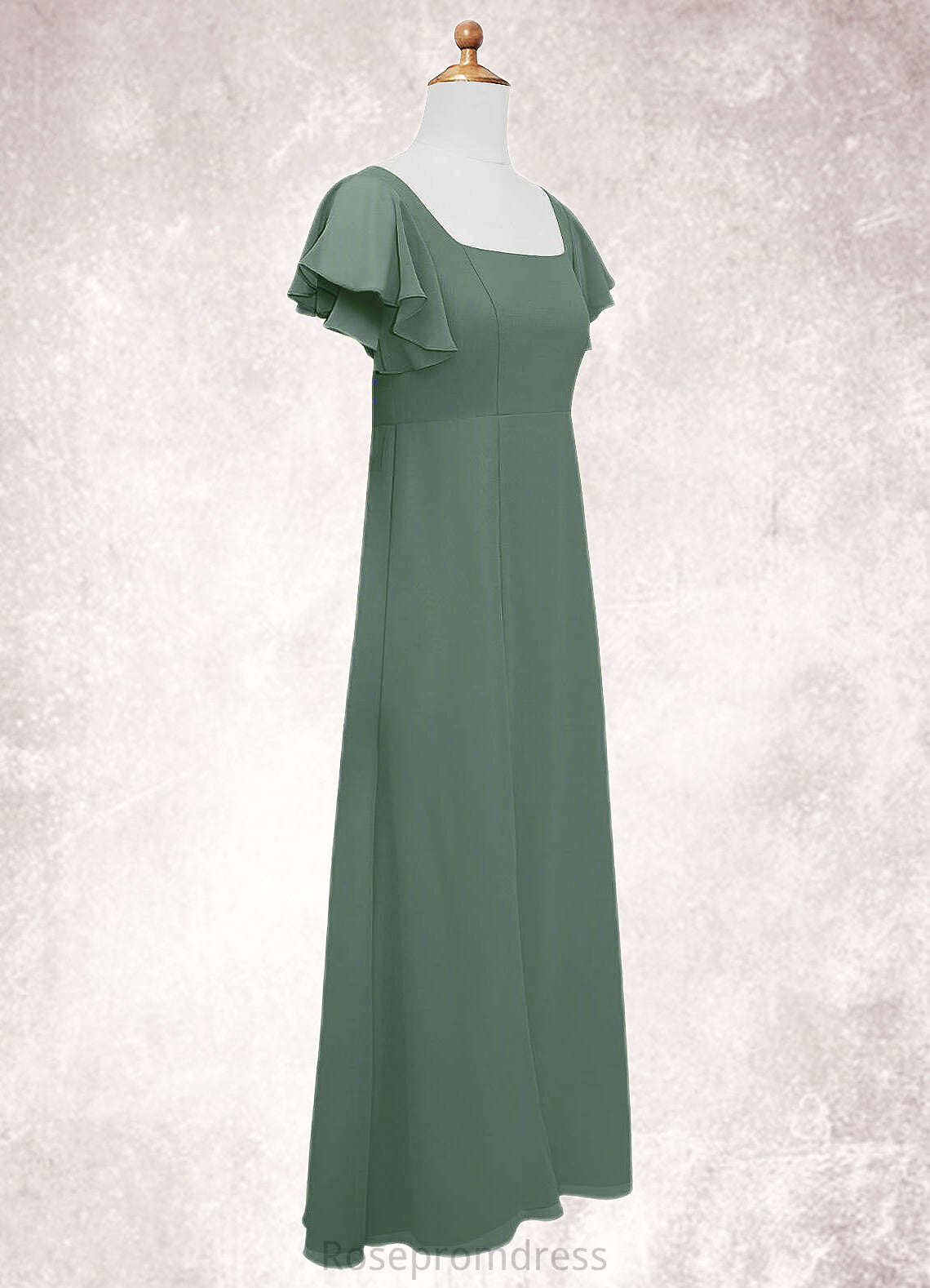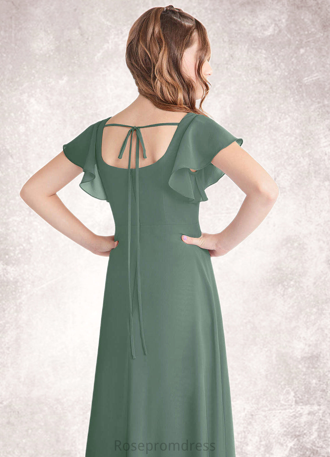Sasha A-Line Bow Chiffon Floor-Length Junior Bridesmaid Dress Eucalyptus SRSP0022847