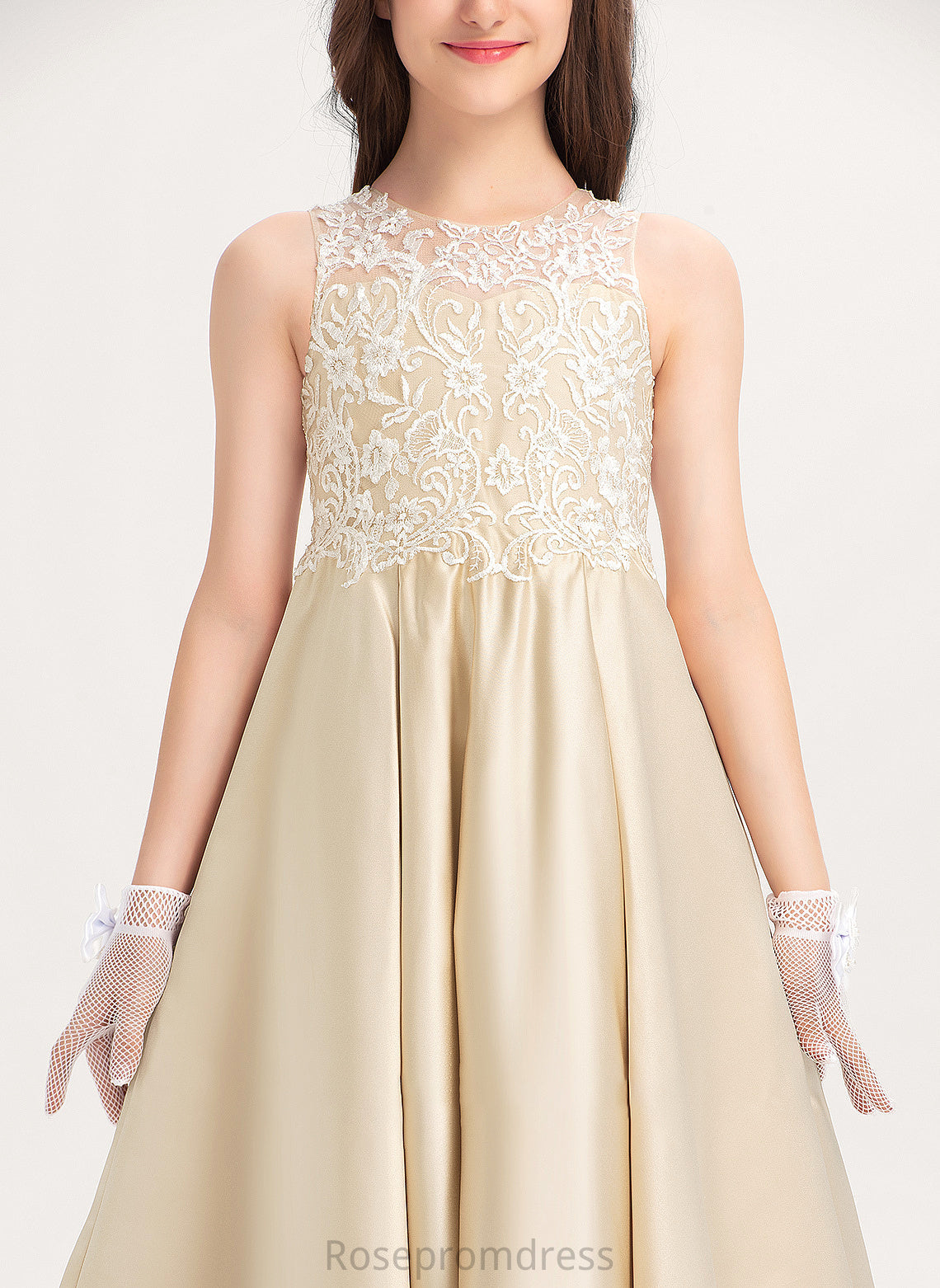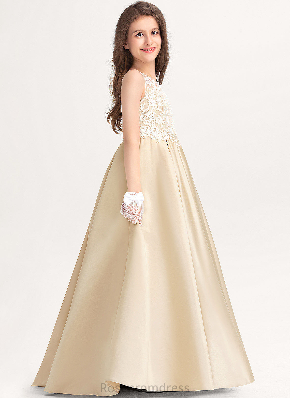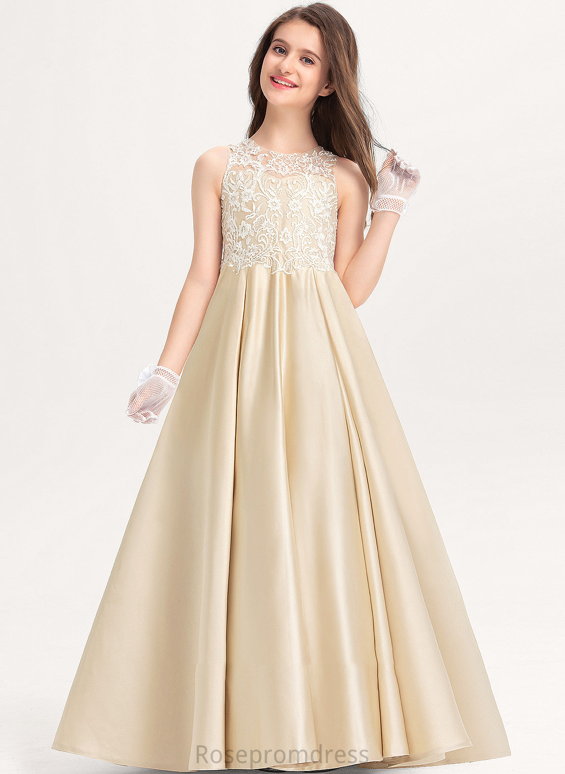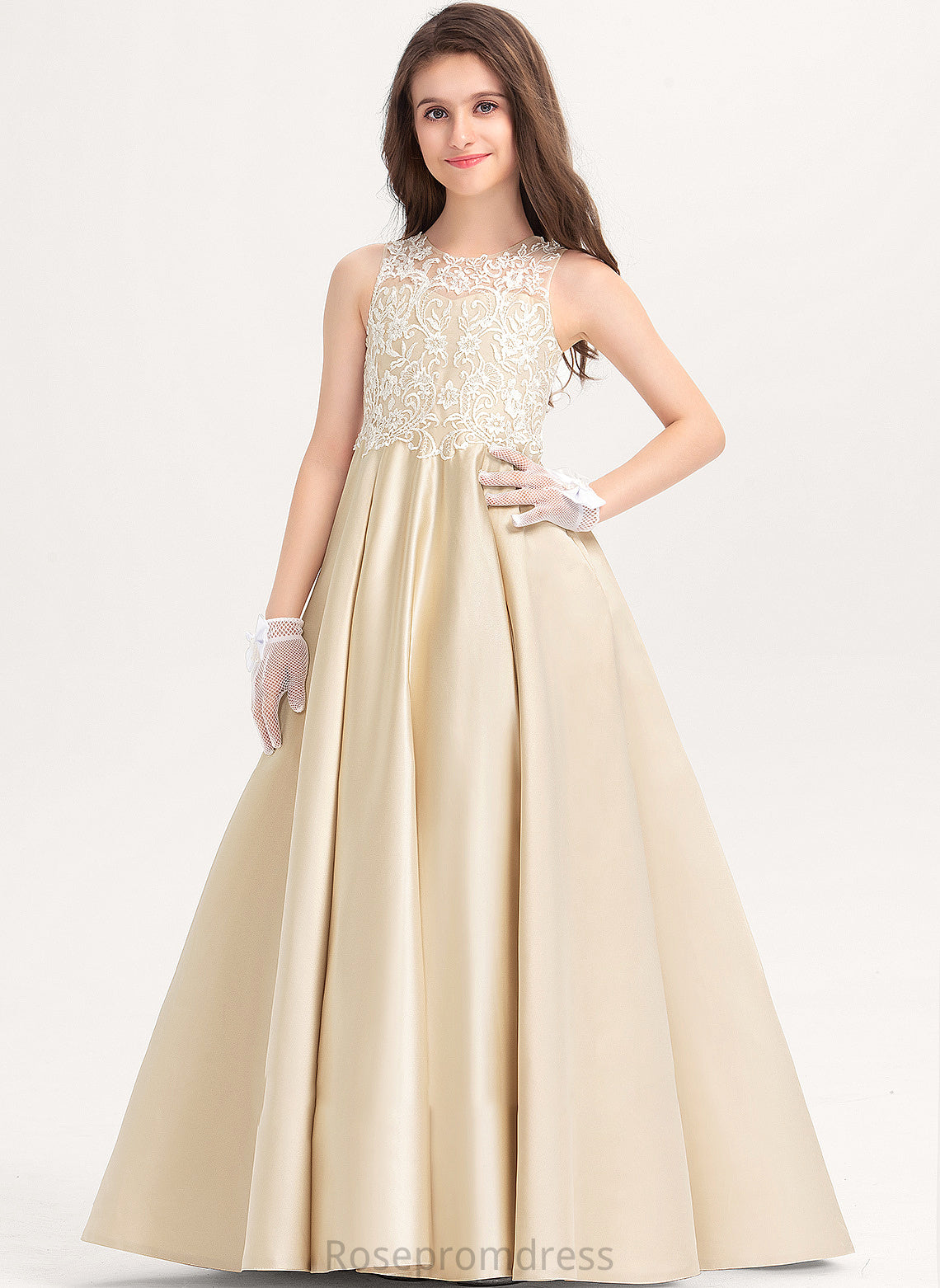 Satin Amiah Junior Bridesmaid Dresses Scoop Ball-Gown/Princess Lace Neck Floor-Length