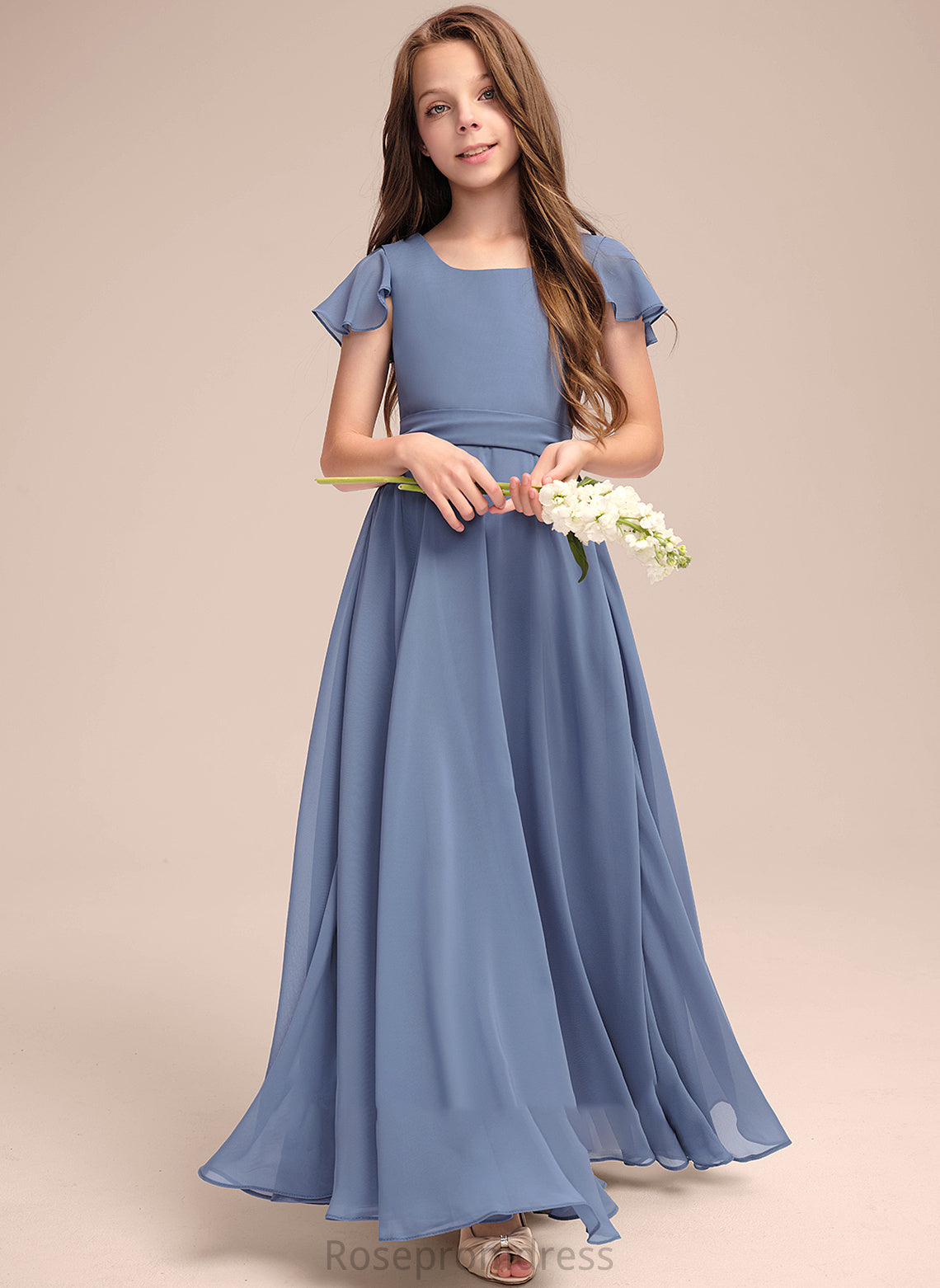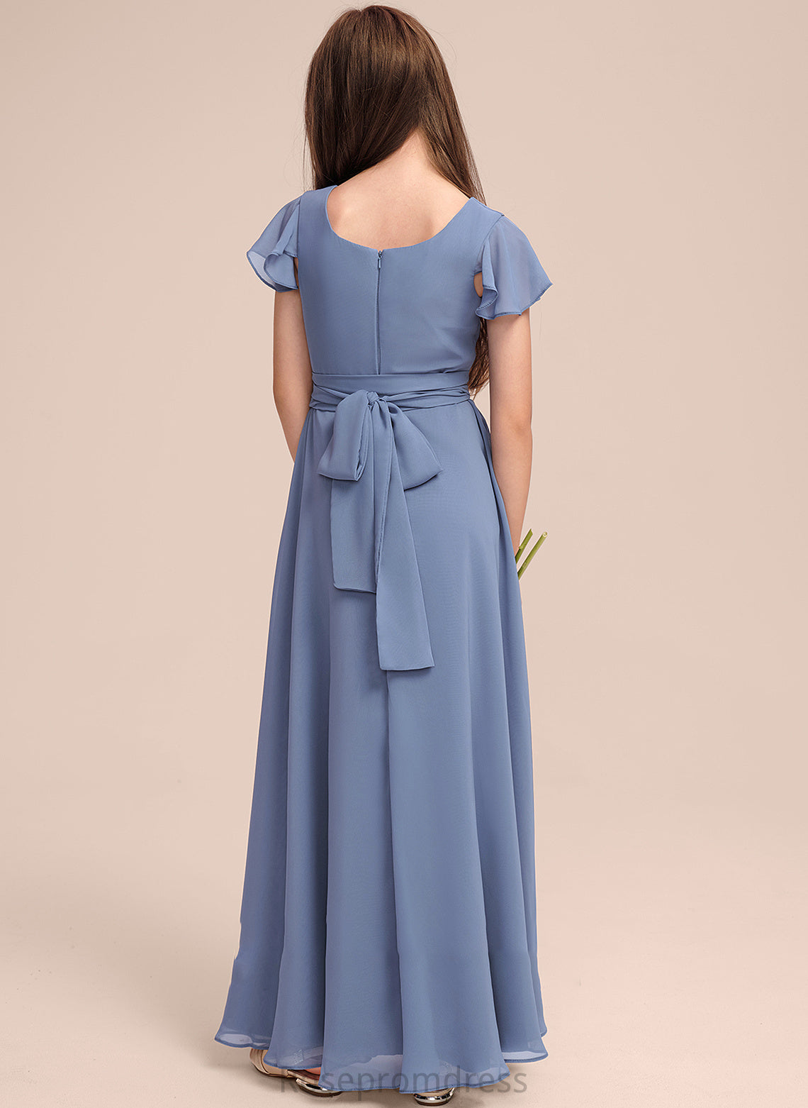 Scoop Junior Bridesmaid Dresses Bow(s) A-Line Neck Britney Chiffon With Floor-Length