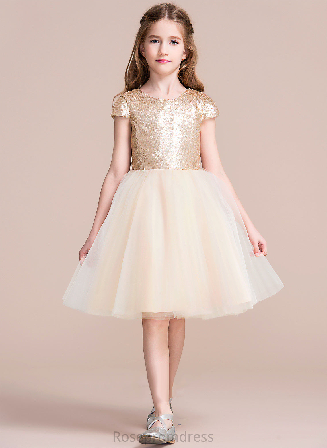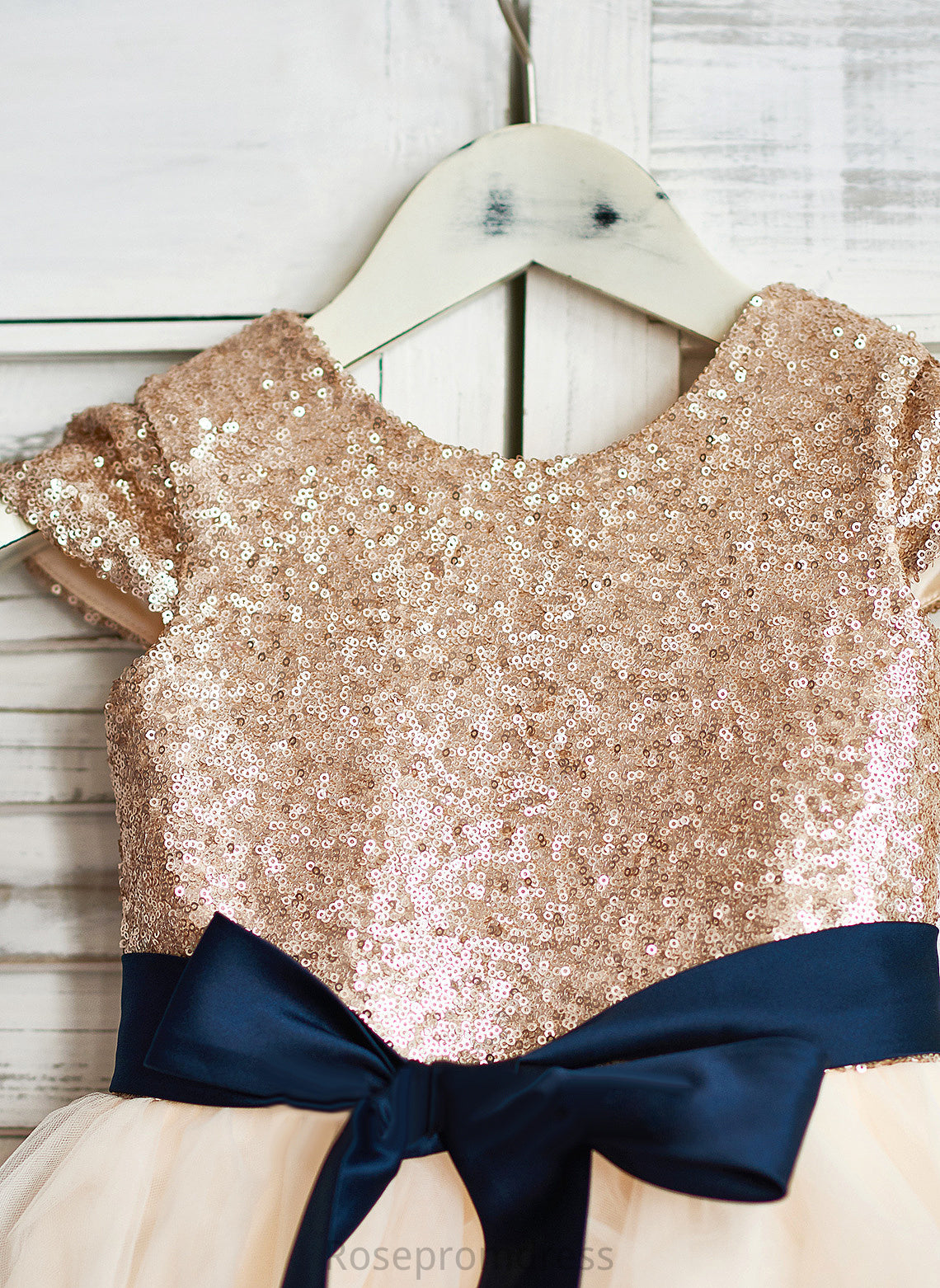 Scoop - Tulle/Sequined With Sash Dress Winifred Girl Neck Sleeveless Flower Knee-length A-Line Flower Girl Dresses