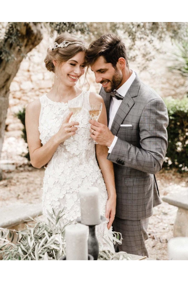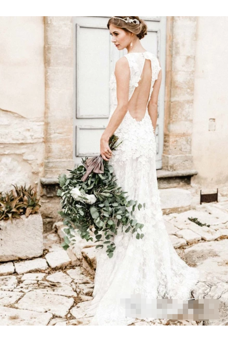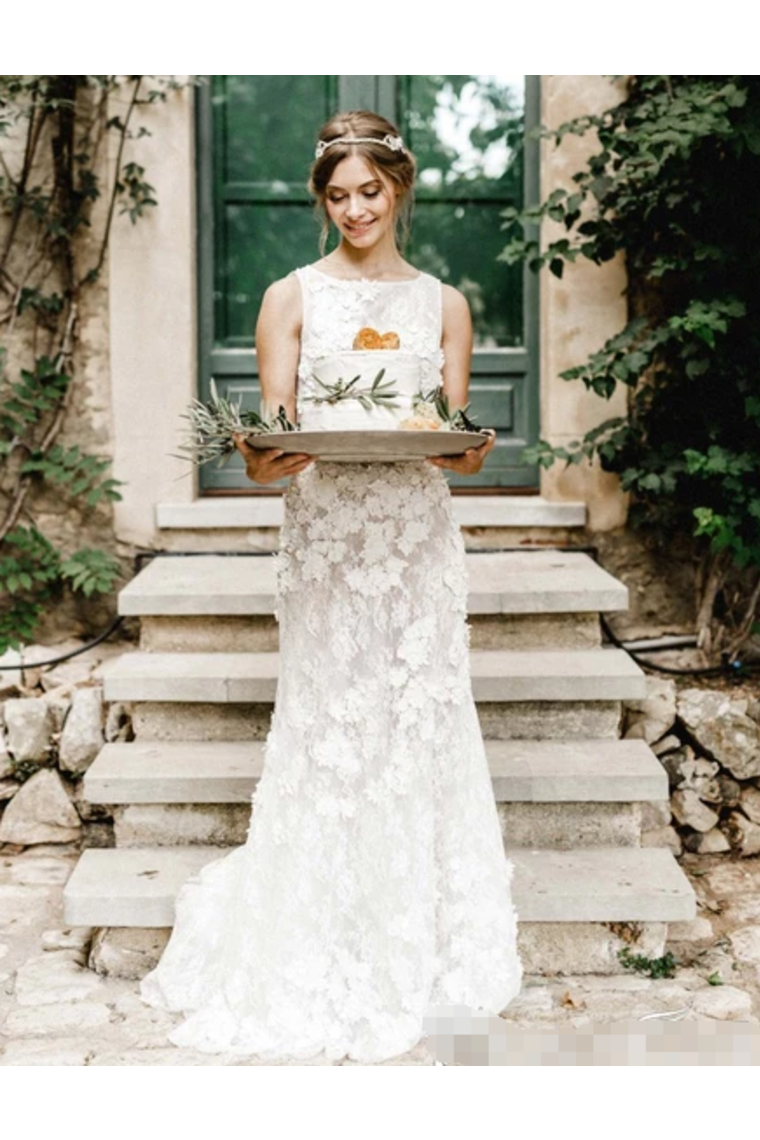 Scoop Wedding Dress With Embellished Bodice Vivid Floral Lace Wedding Gown