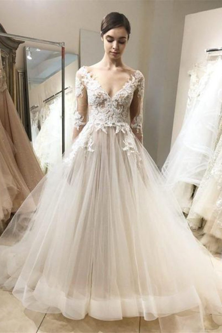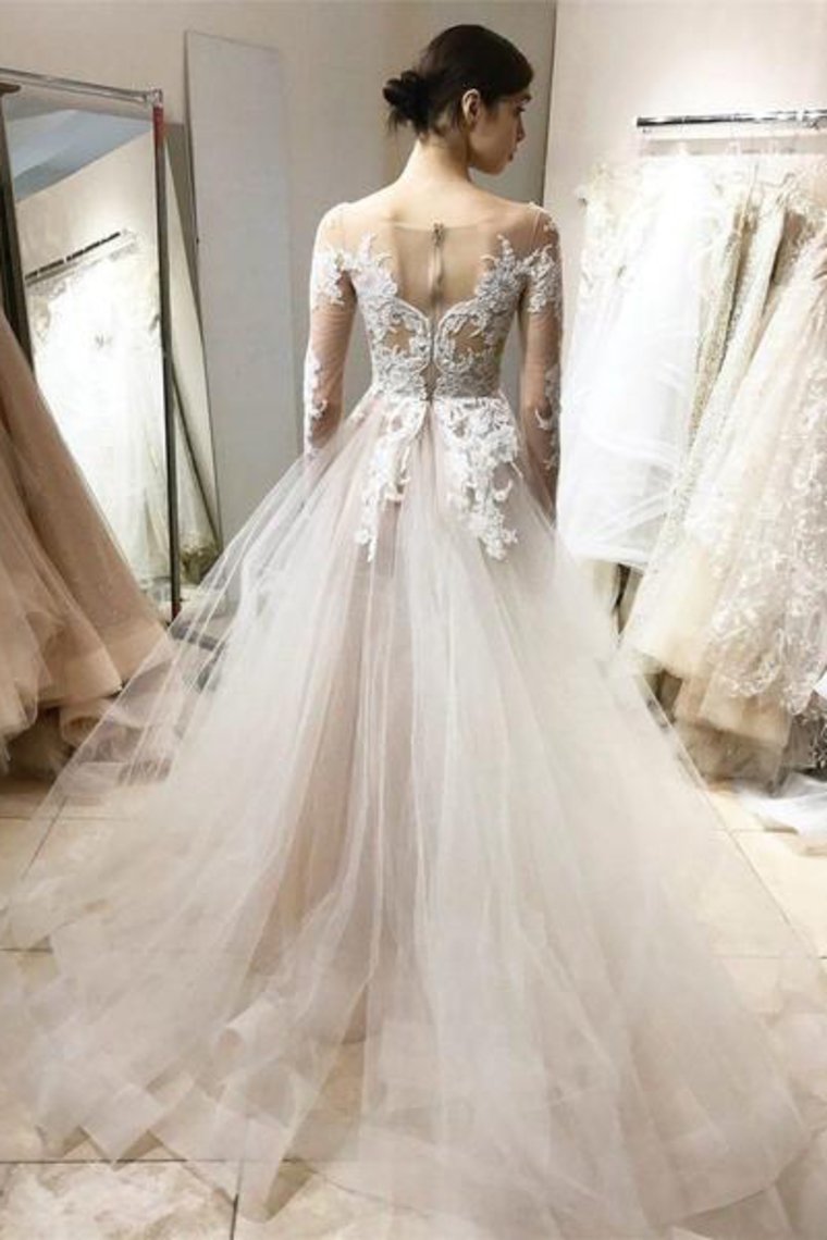 See Through Vintage Lace Wedding Dresses Ball Gown With Sleeves
