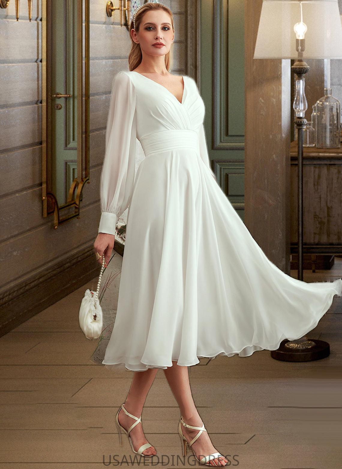Selina A-Line V-neck Tea-Length Wedding Dress DSP0013772