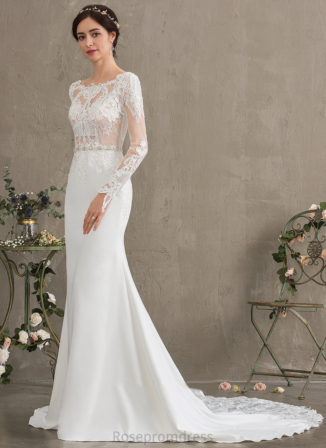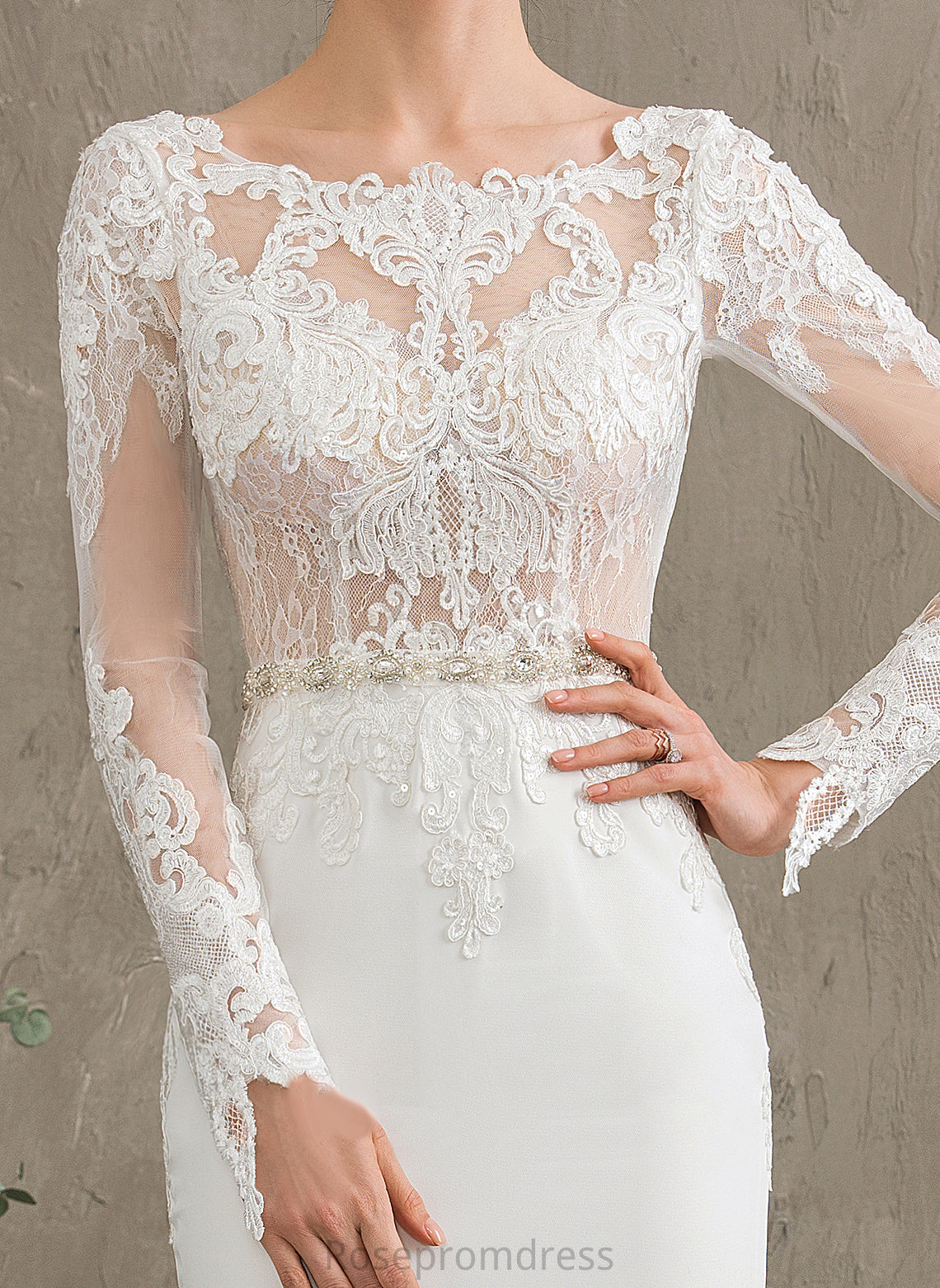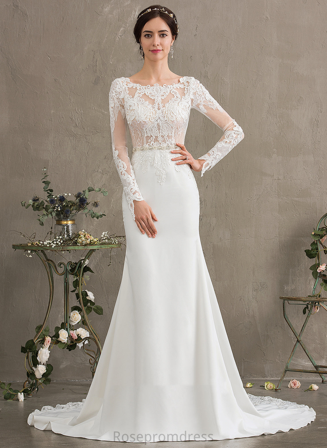Sequins Beading Dress With Chapel Stretch Train Neck Crepe Scoop Wedding Dresses Trumpet/Mermaid Lace Wedding Shiloh