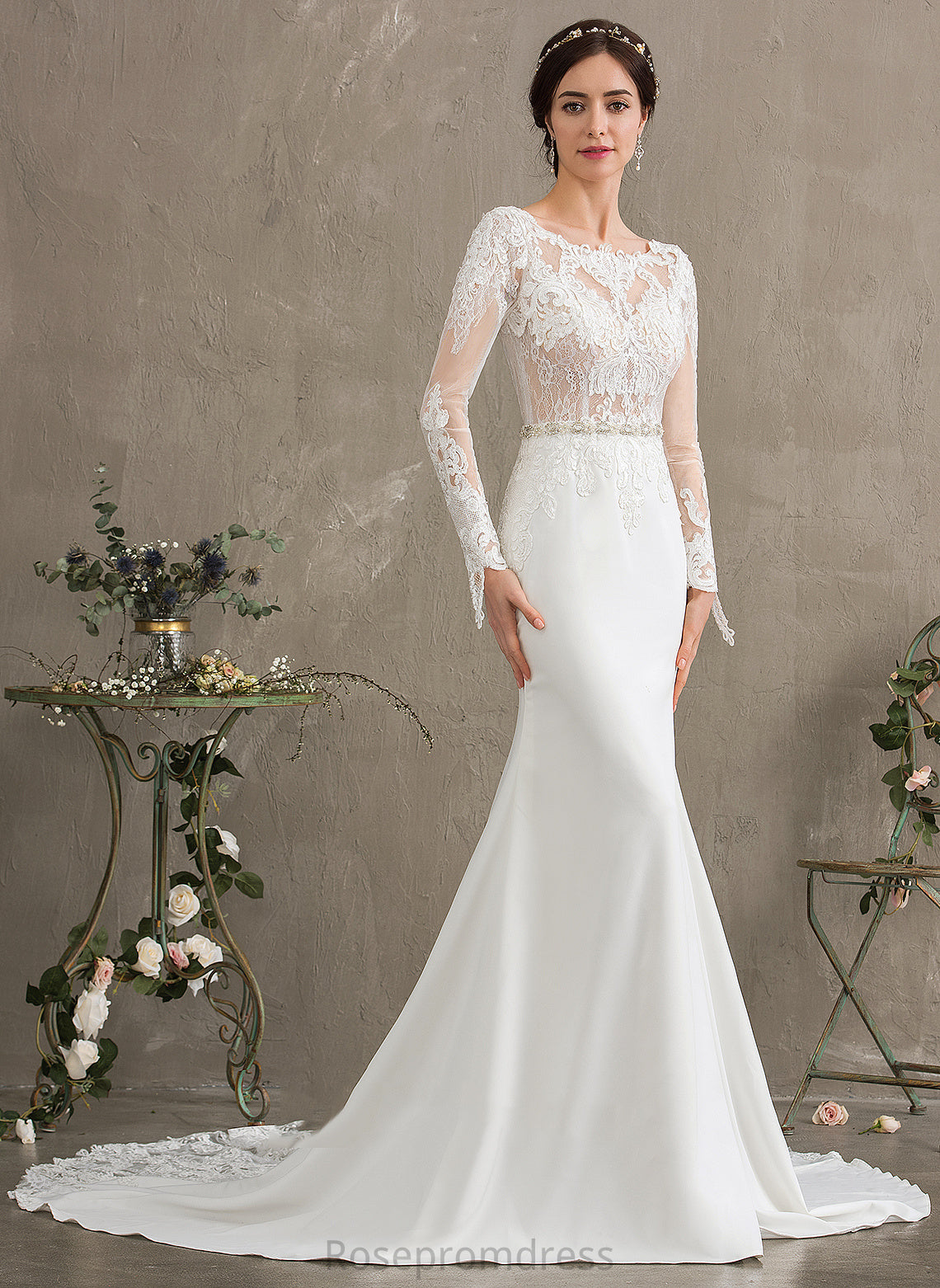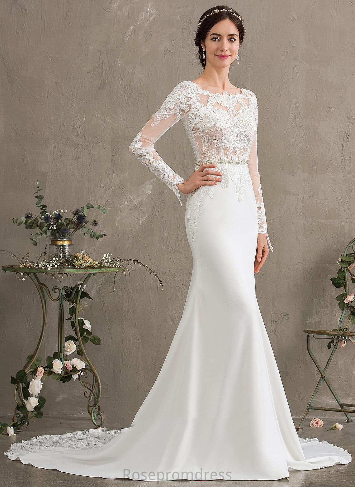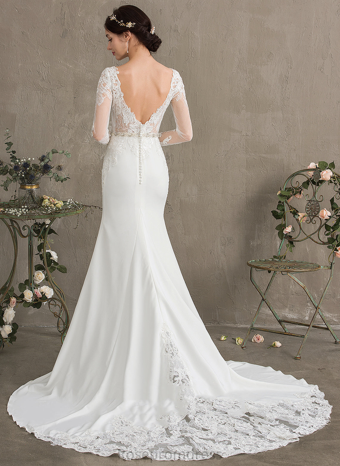 Sequins Beading Dress With Chapel Stretch Train Neck Crepe Scoop Wedding Dresses Trumpet/Mermaid Lace Wedding Shiloh