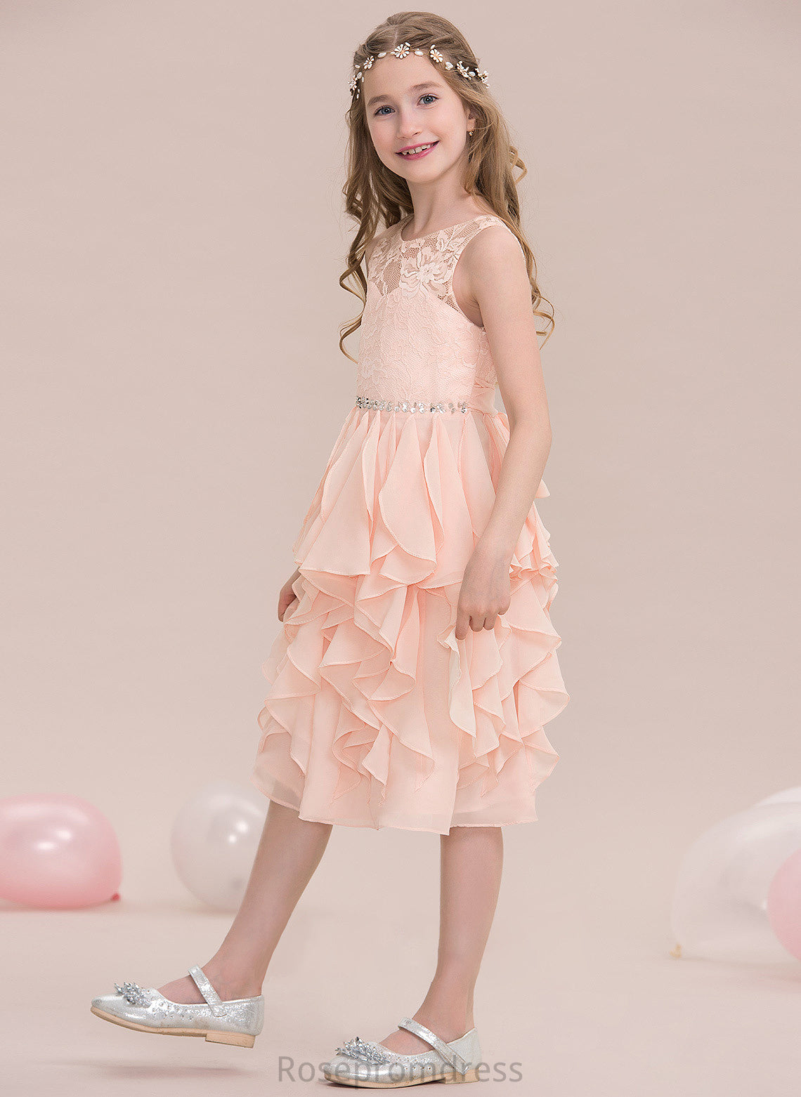 Sequins Chiffon Beading Neck Jaliyah A-Line With Cascading Scoop Ruffles Knee-Length Junior Bridesmaid Dresses