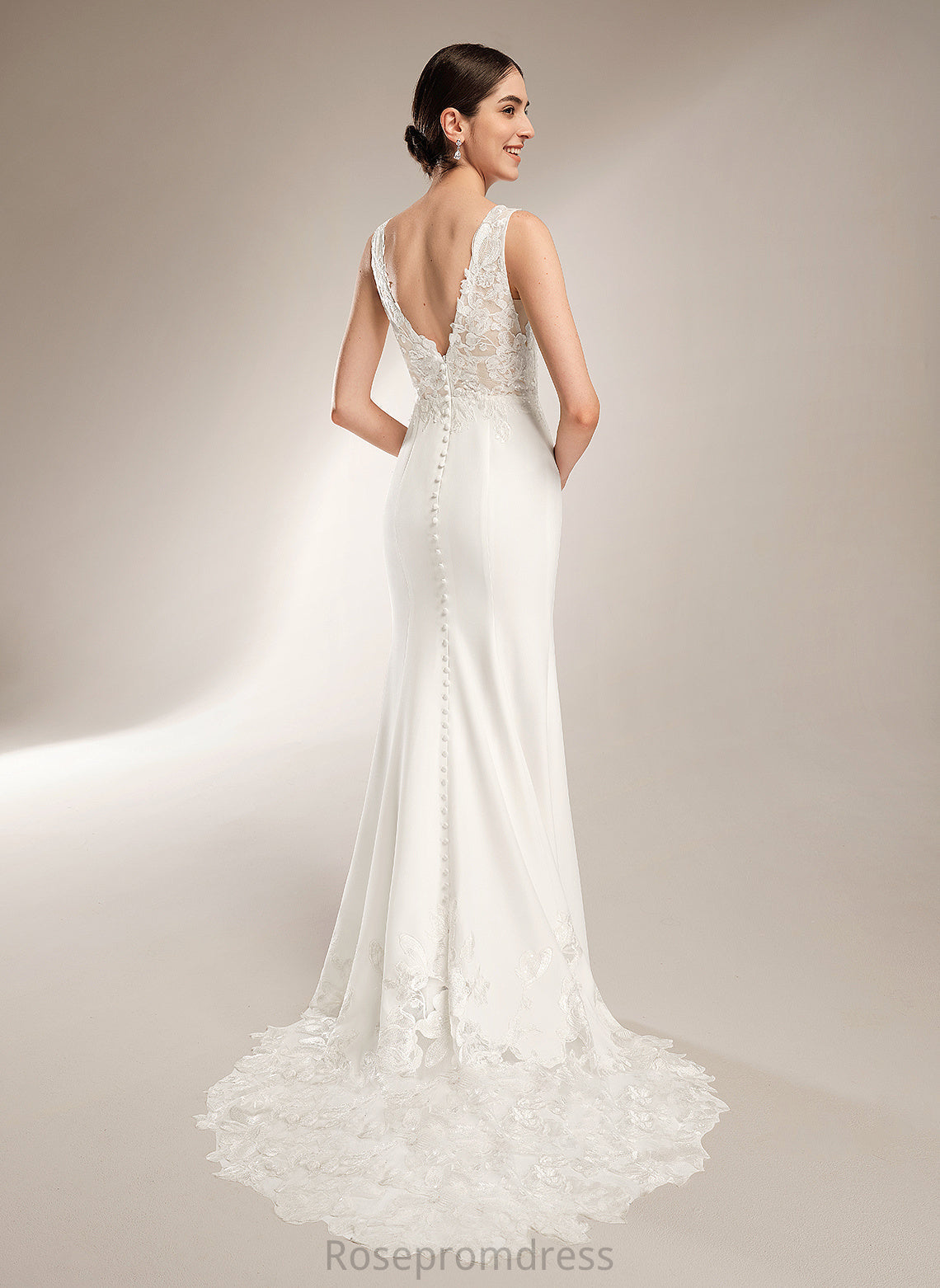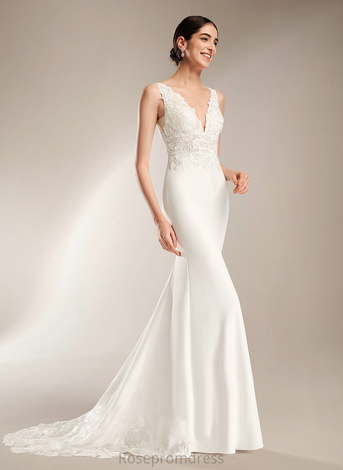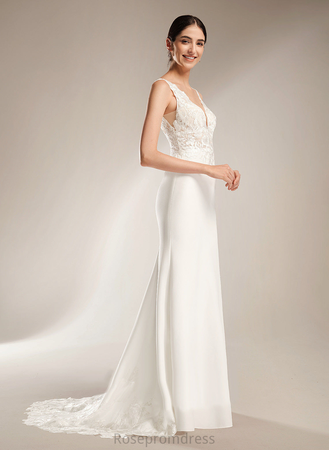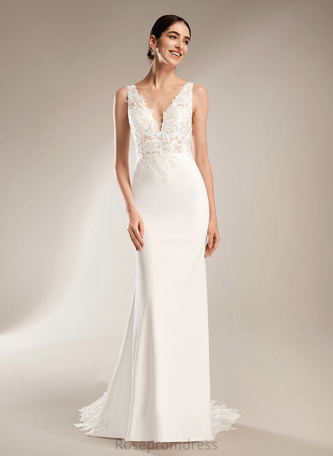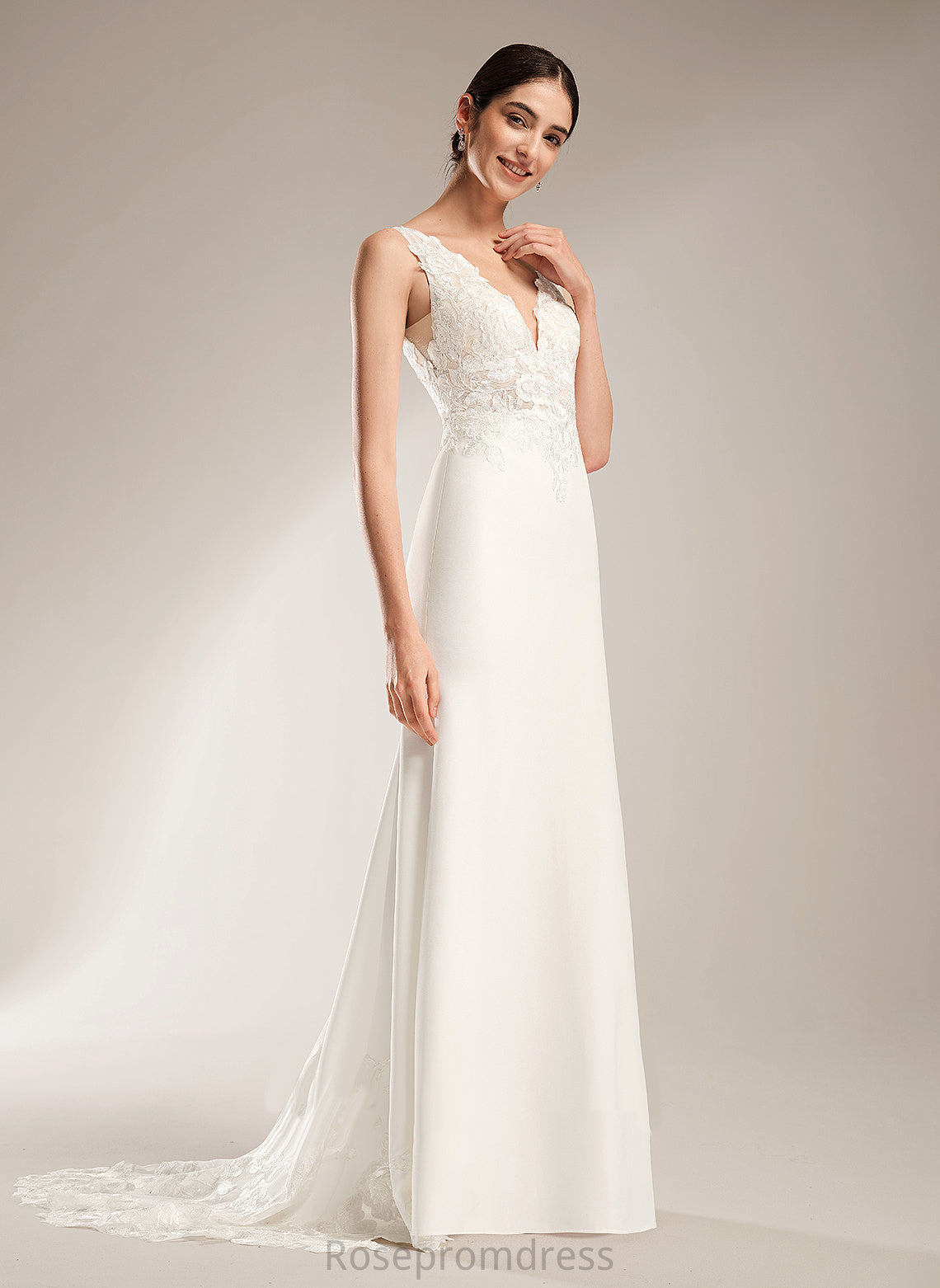 Sequins Stretch Court Dress Wedding Dresses Train Sheath/Column V-neck Alexus With Wedding Crepe