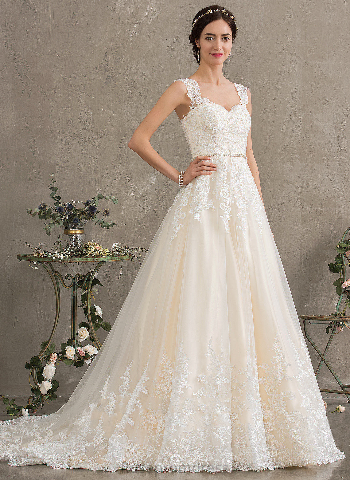 Sequins Tulle Wedding Train Court Lace Dress With Beading Sibyl Ball-Gown/Princess Sweetheart Wedding Dresses