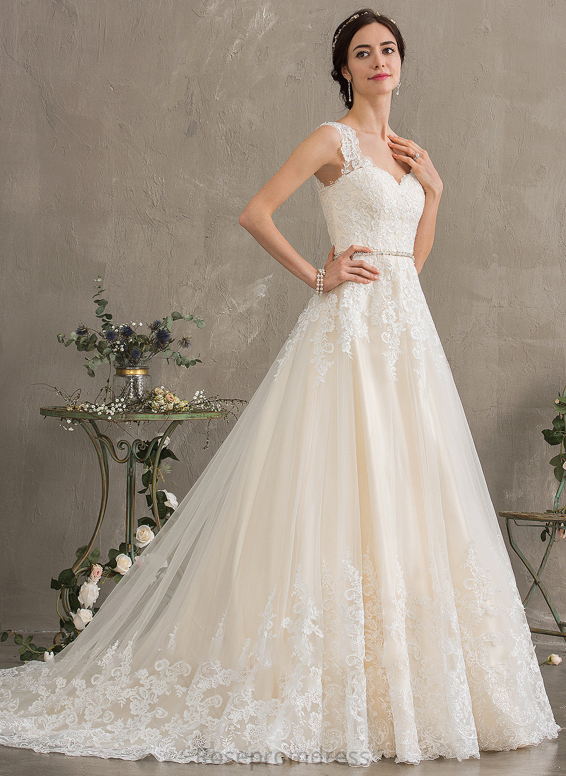 Sequins Wedding Dresses Tulle Wedding Ball-Gown/Princess Dress Harper Train Sweetheart Court With Beading