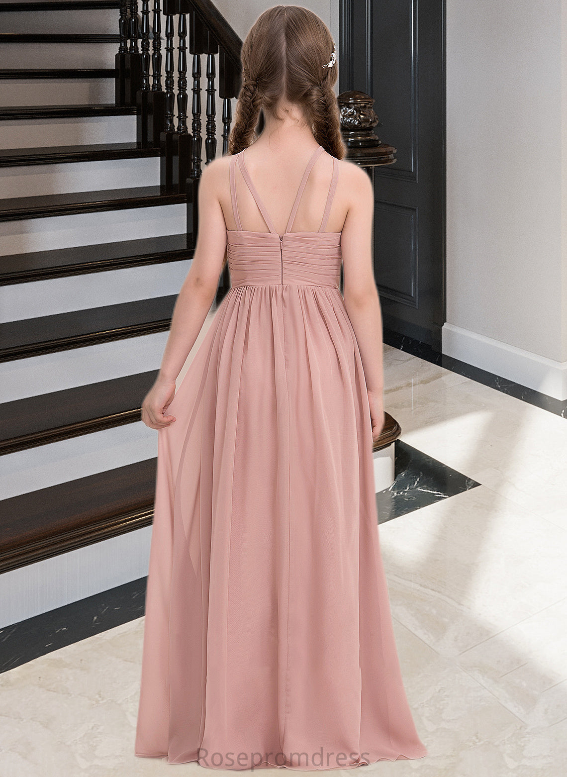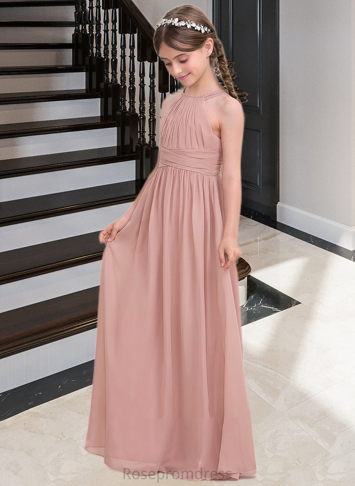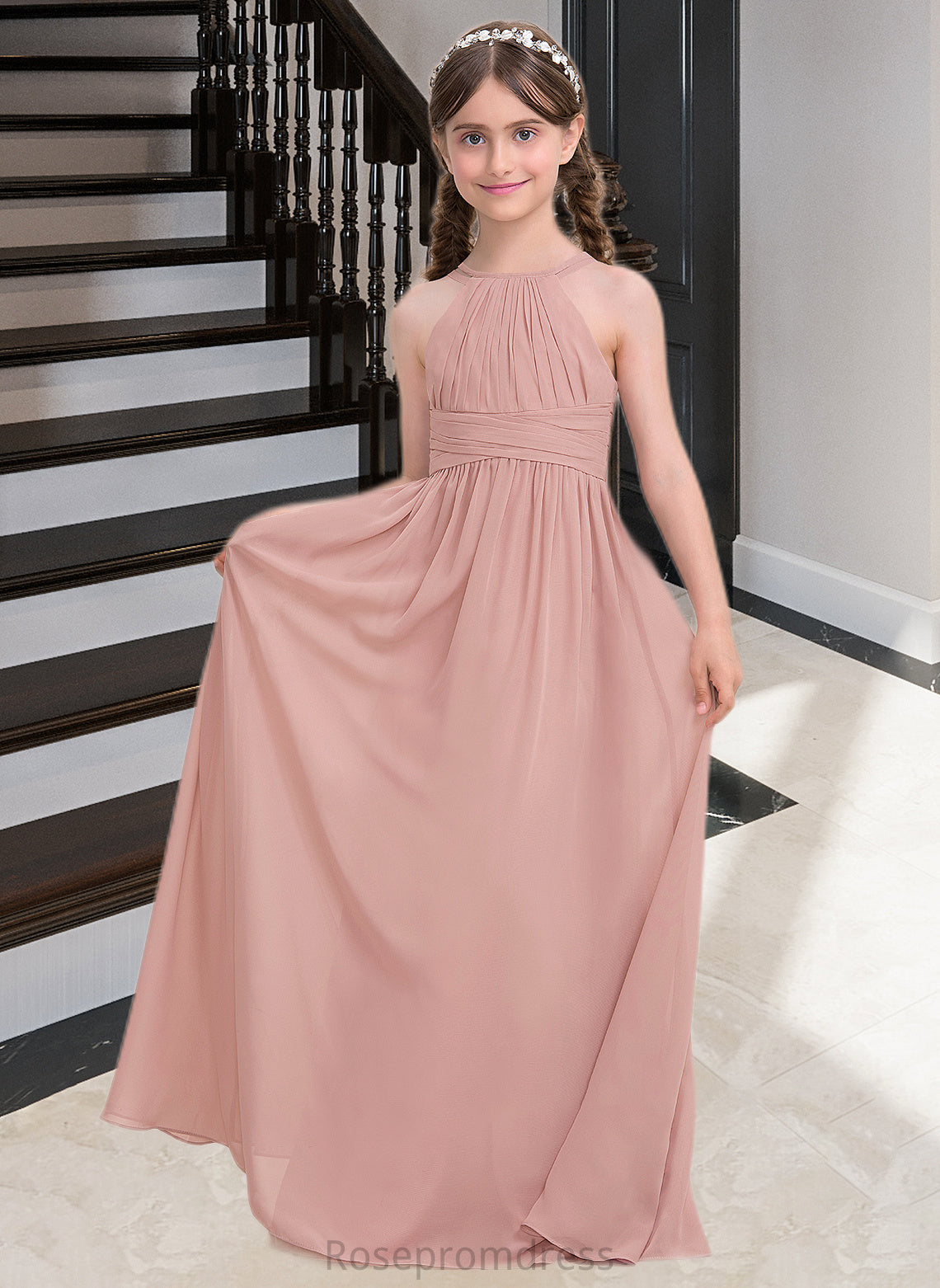 Serenity A-Line Scoop Neck Floor-Length Chiffon Junior Bridesmaid Dress With Ruffle SRSP0013473