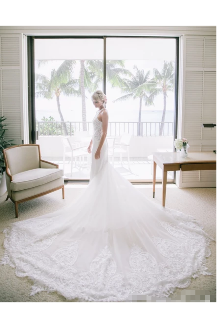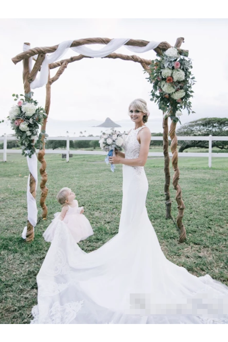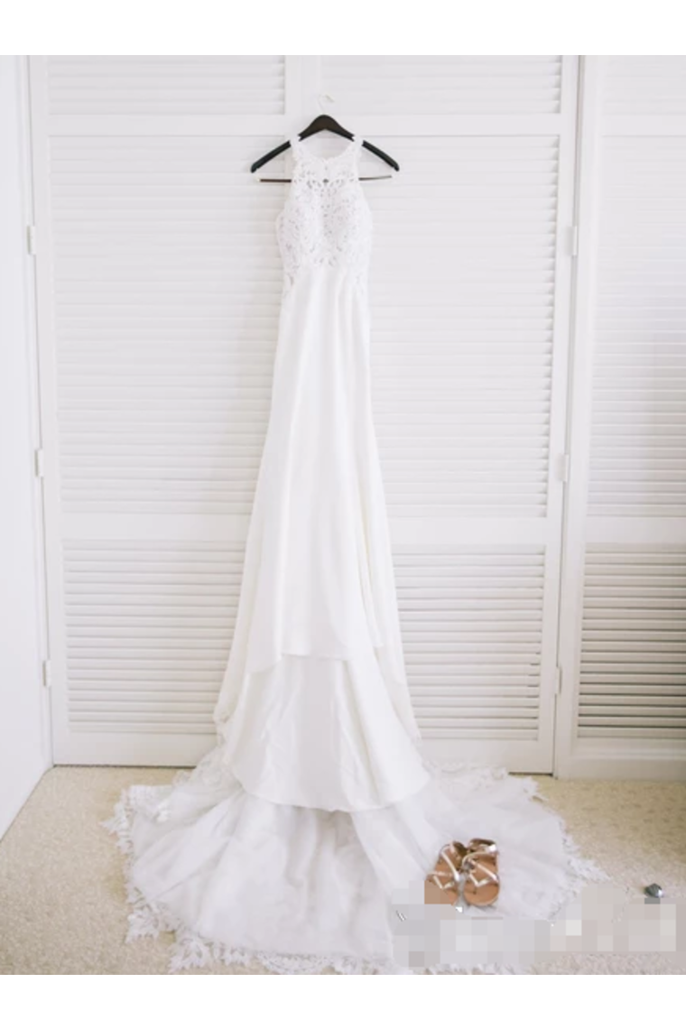 Sexy Appliqued Beach Wedding Dress With Racerback Illusion Neckline Wedding SRSPBN4L9Q7