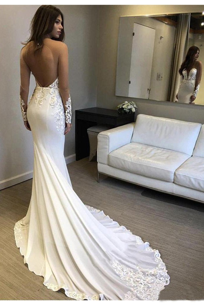 Sexy Berta Mermaid V Neck Wedding Dress Long Sleeves Open Back Wedding Gowns W1088