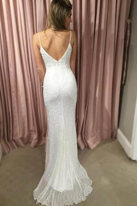 Sexy Mermaid Spaghetti Straps Sequins V Neck Prom Dresses, Wedding SRS20438