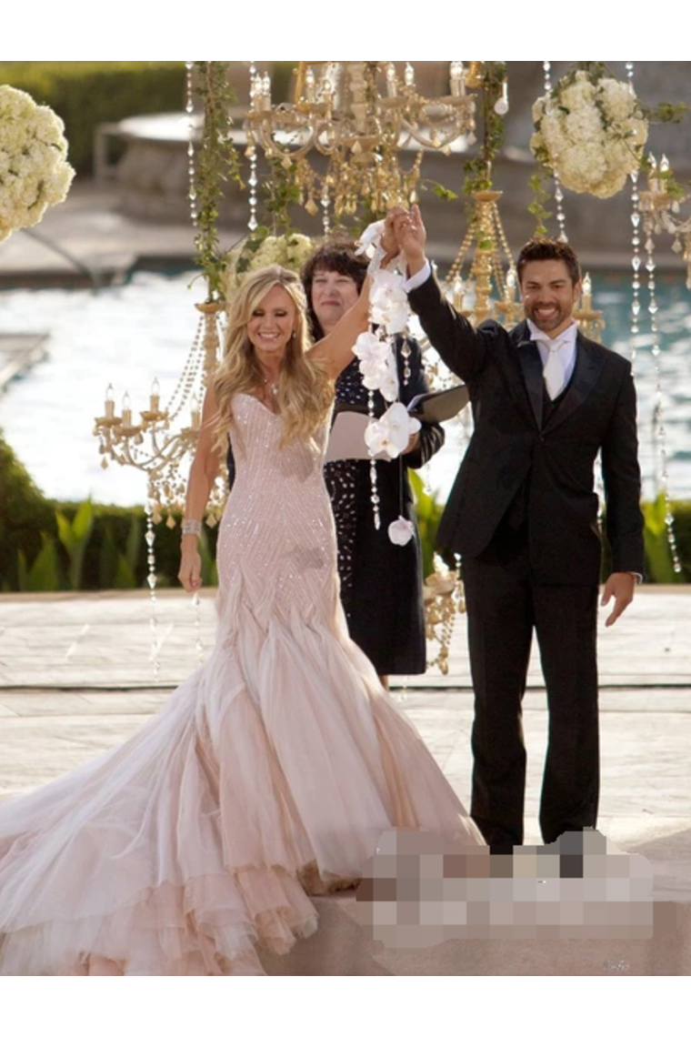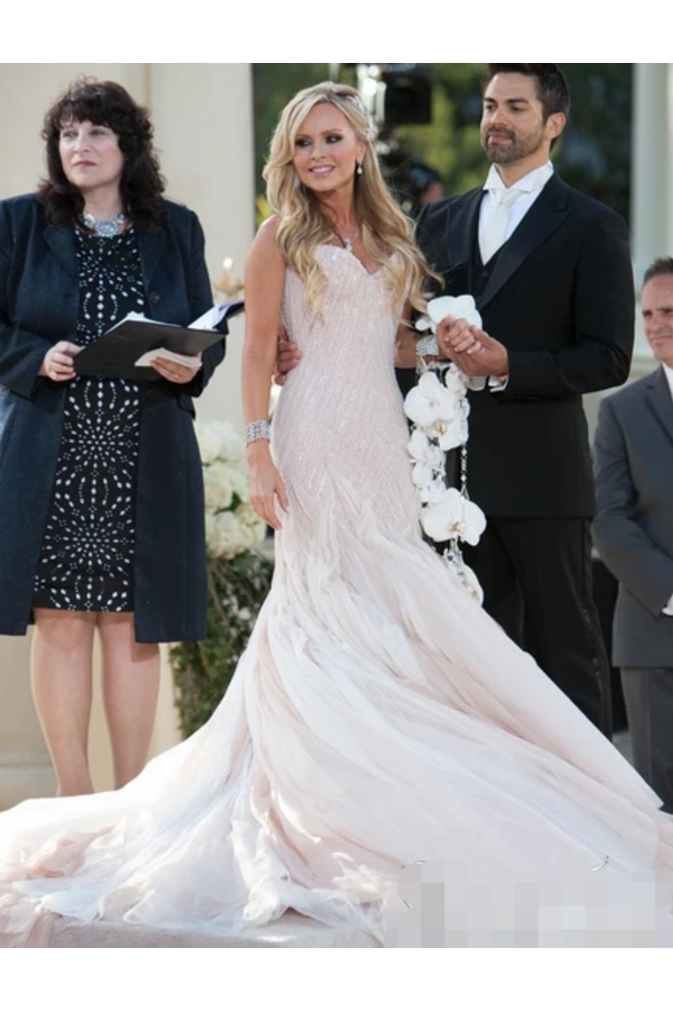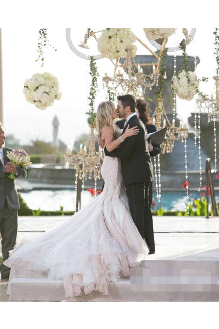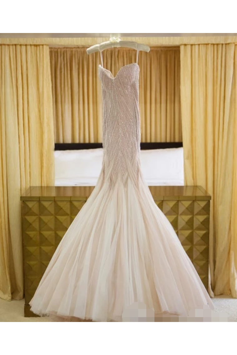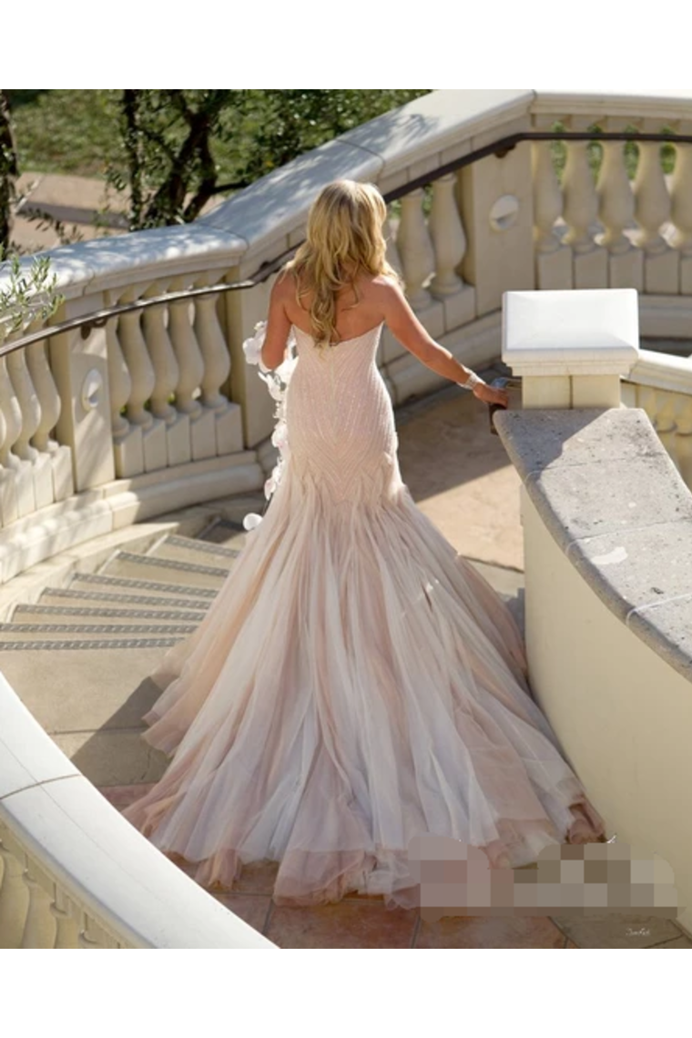 Sexy Sequins Mermaid Wedding Dress With Ruffles Luxurious Champagne Bridal Gown