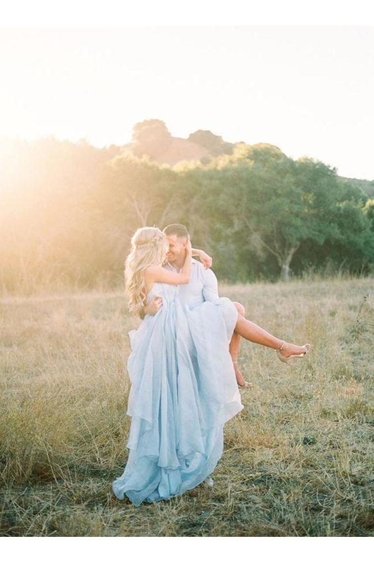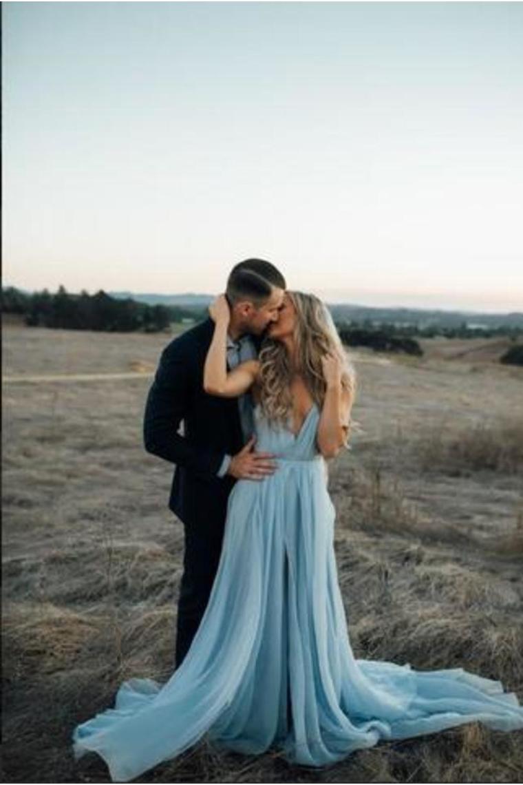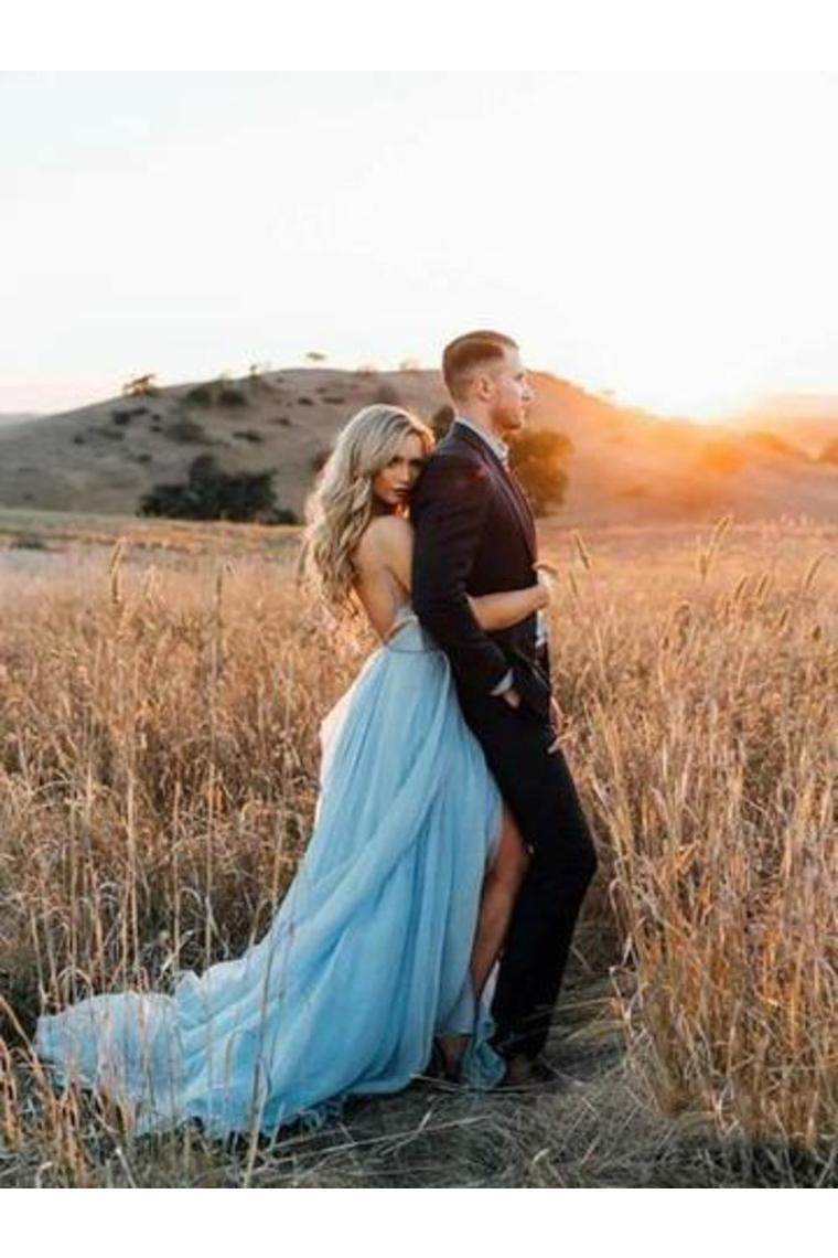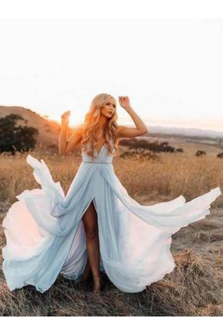 Sexy Split Beach Simple Wedding Dresses Chiffon Long Prom Dress