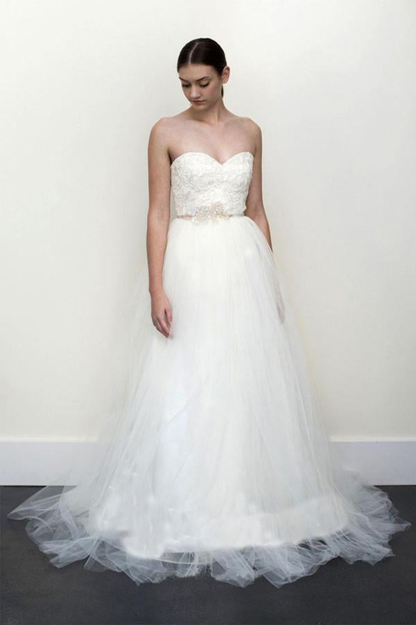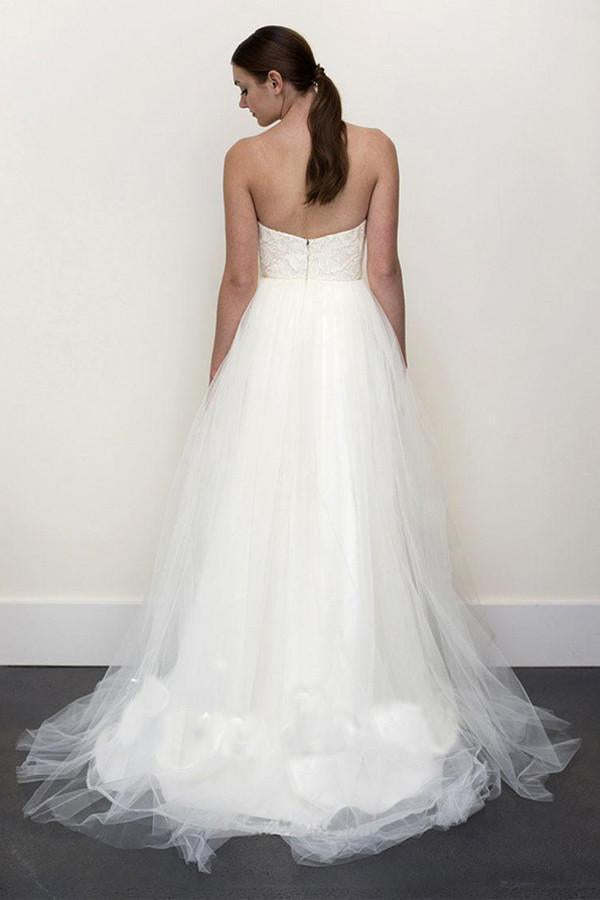 Sexy Top A-line White Lace Grey Tulle Strapless Sweetheart Neck Wedding Dress RS357