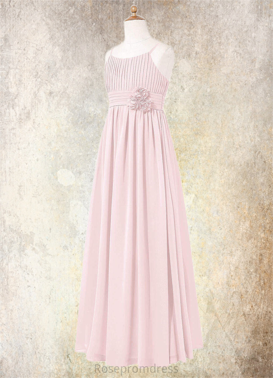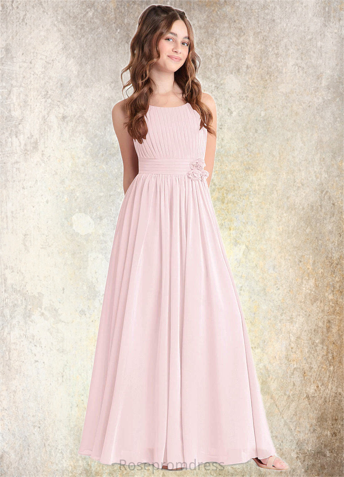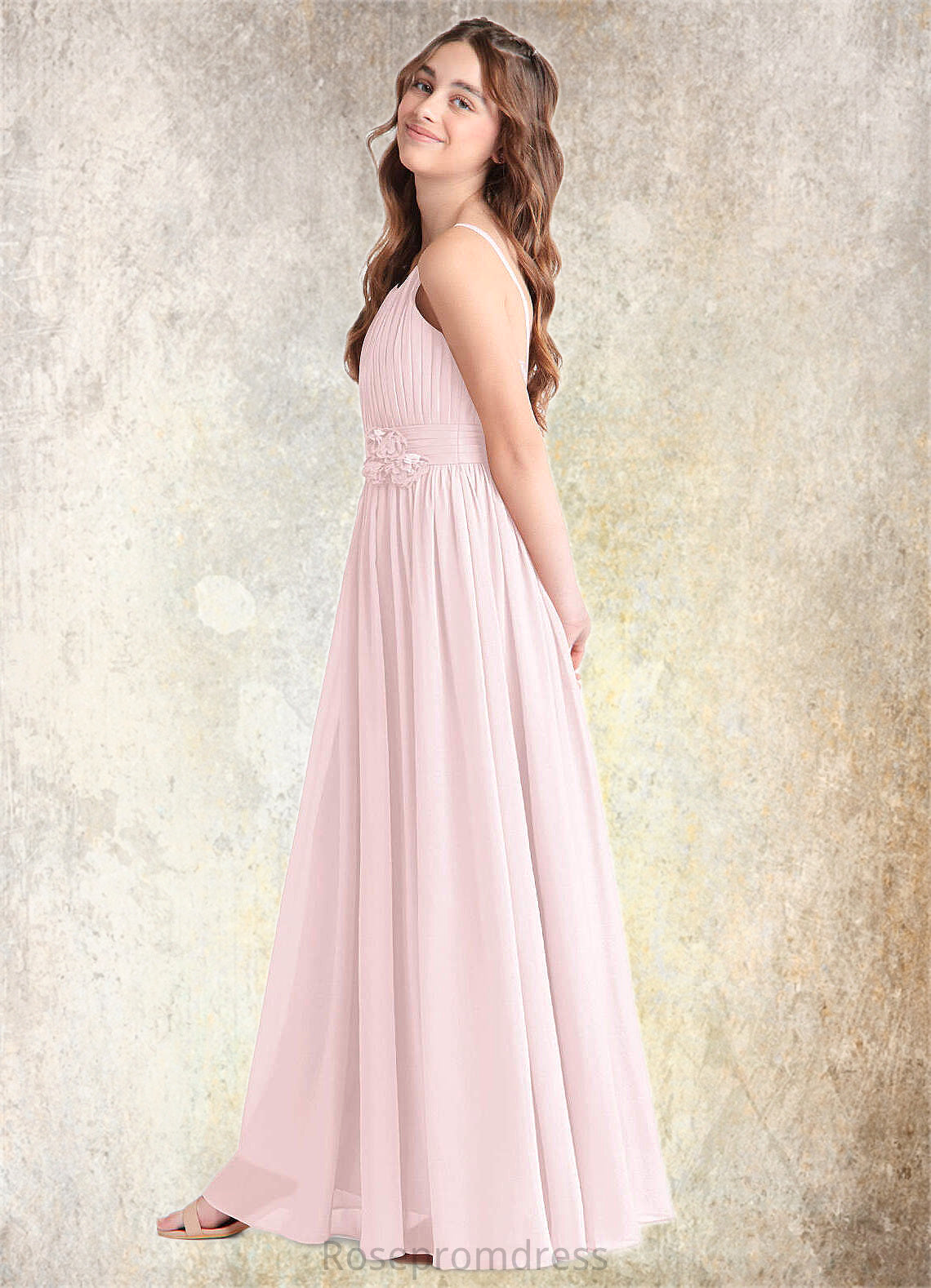 Shaniya A-Line Floral Chiffon Floor-Length Junior Bridesmaid Dress Blushing Pink SRSP0022851