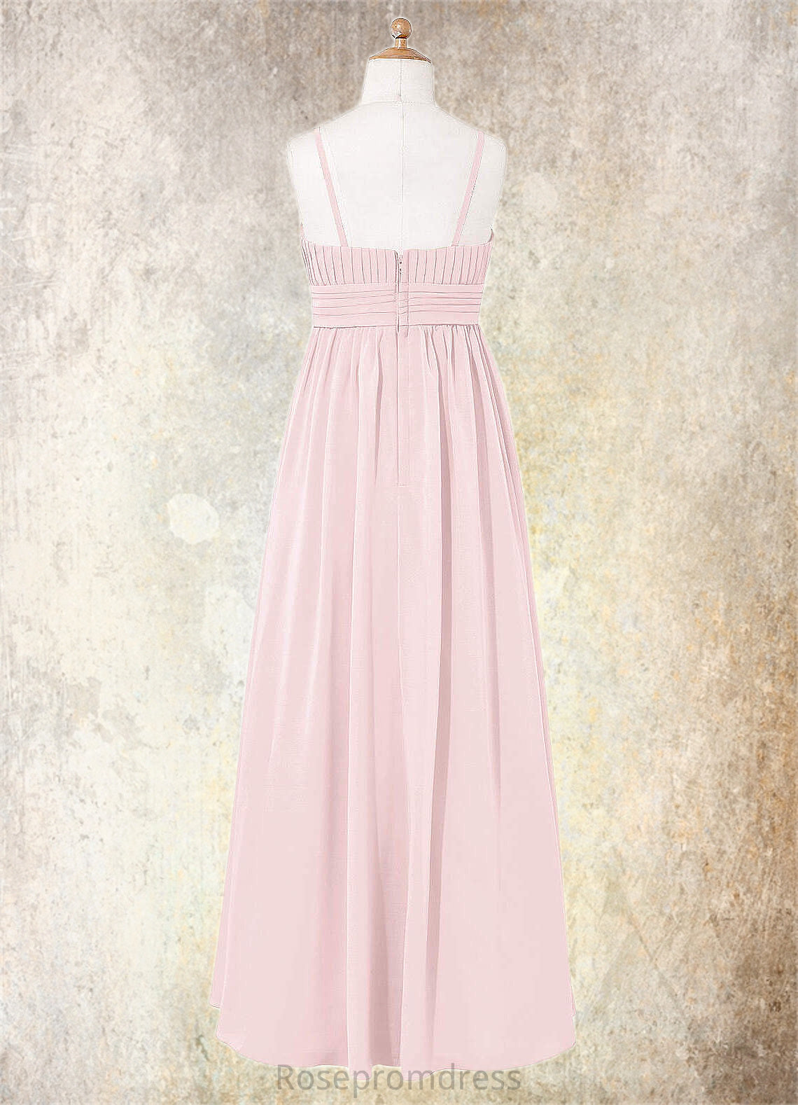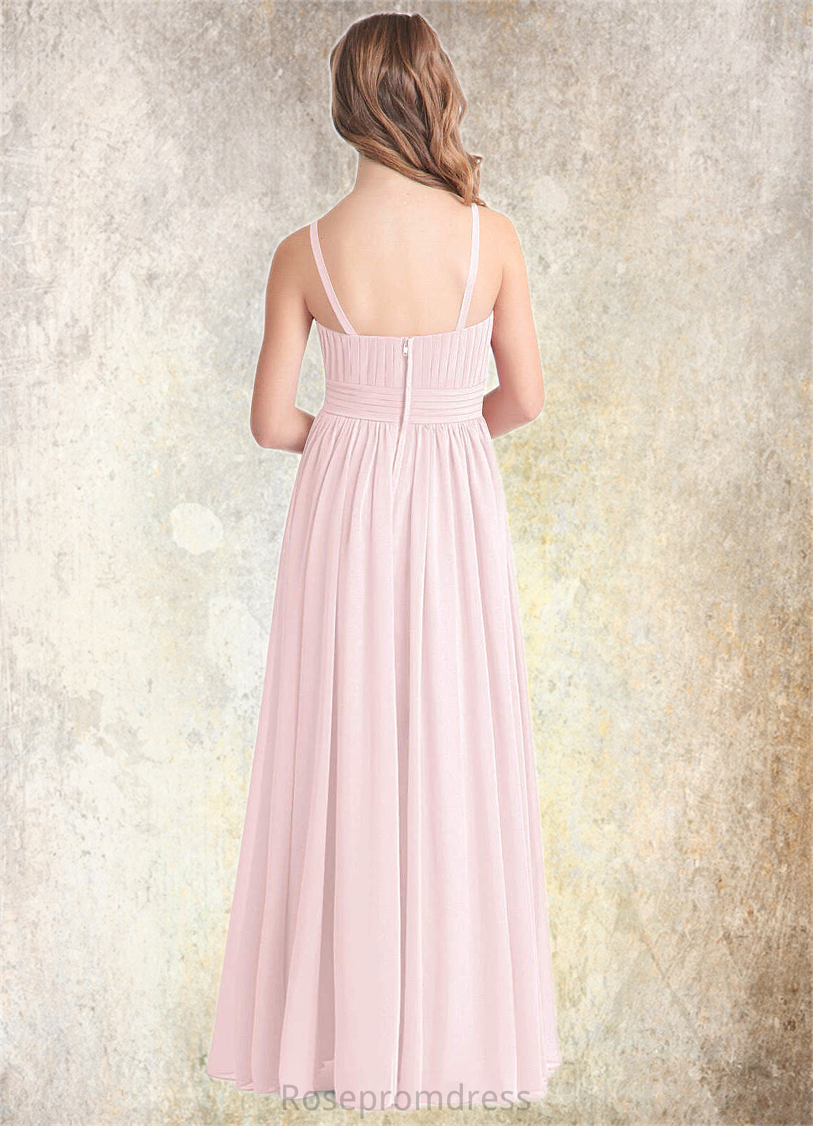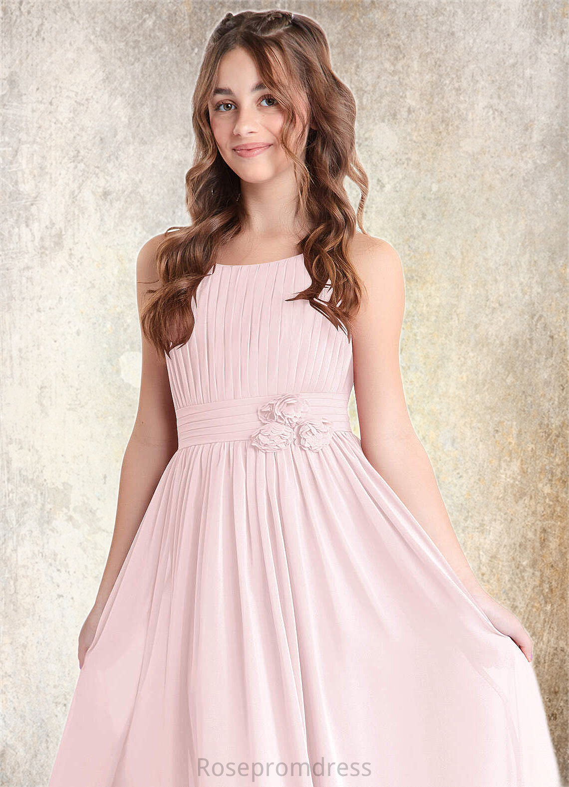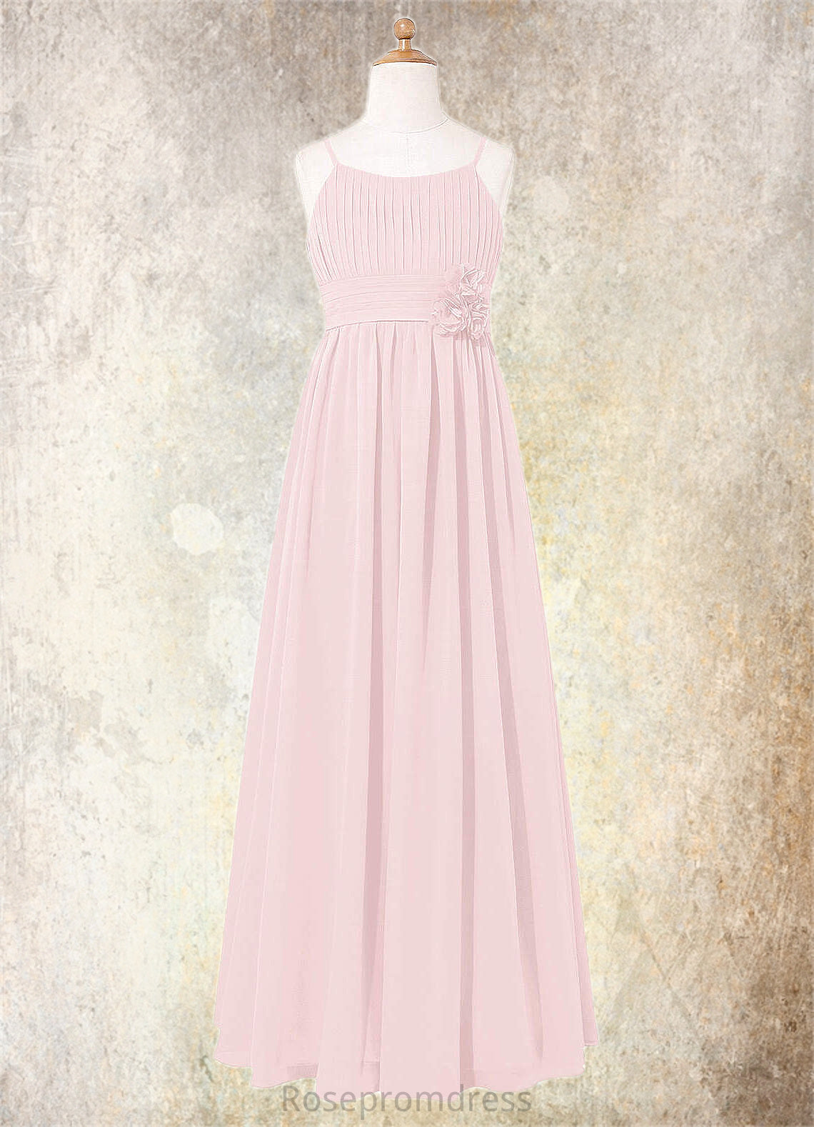 Shaniya A-Line Floral Chiffon Floor-Length Junior Bridesmaid Dress Blushing Pink SRSP0022851