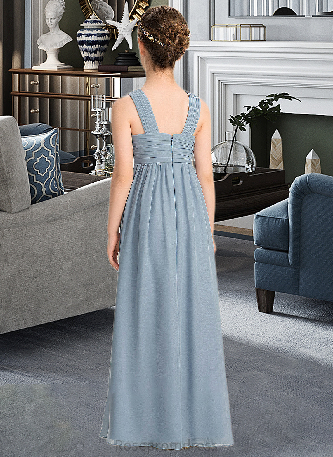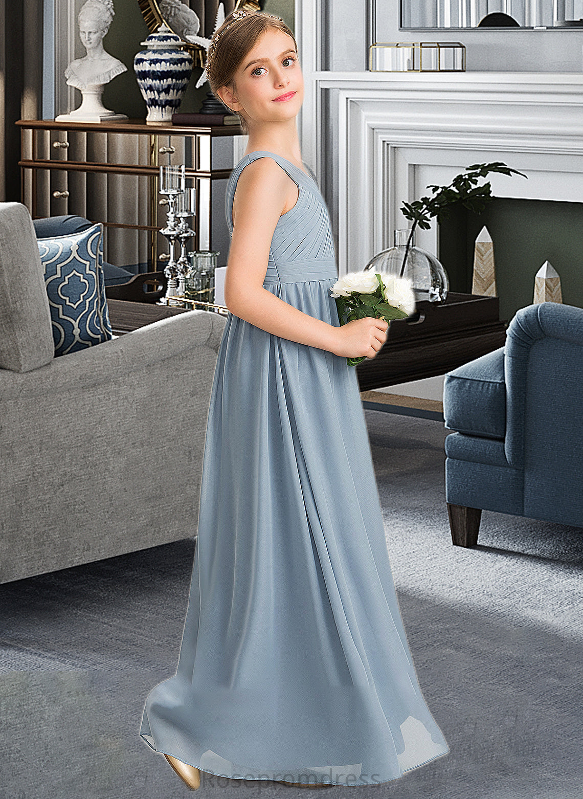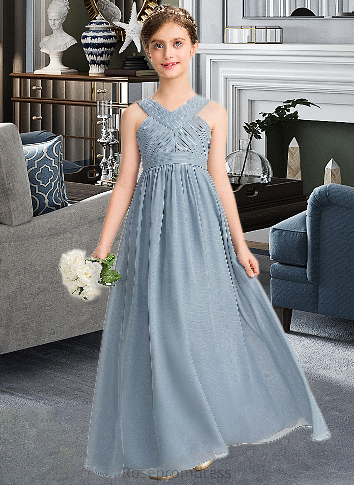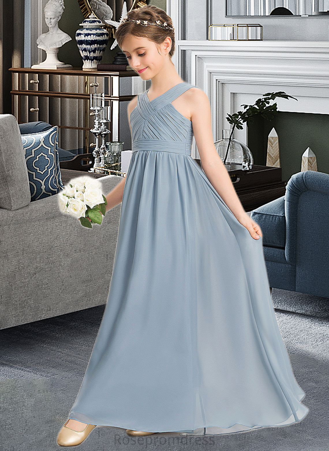 Shannon A-Line V-neck Floor-Length Chiffon Junior Bridesmaid Dress With Ruffle SRSP0013561