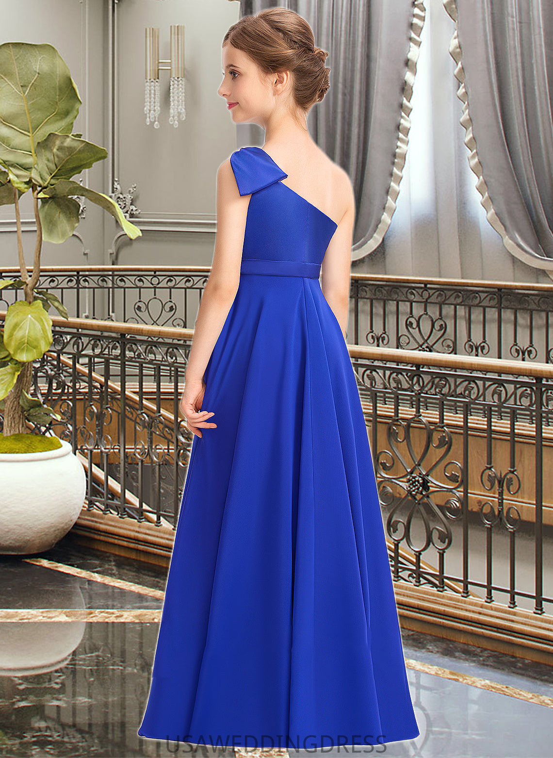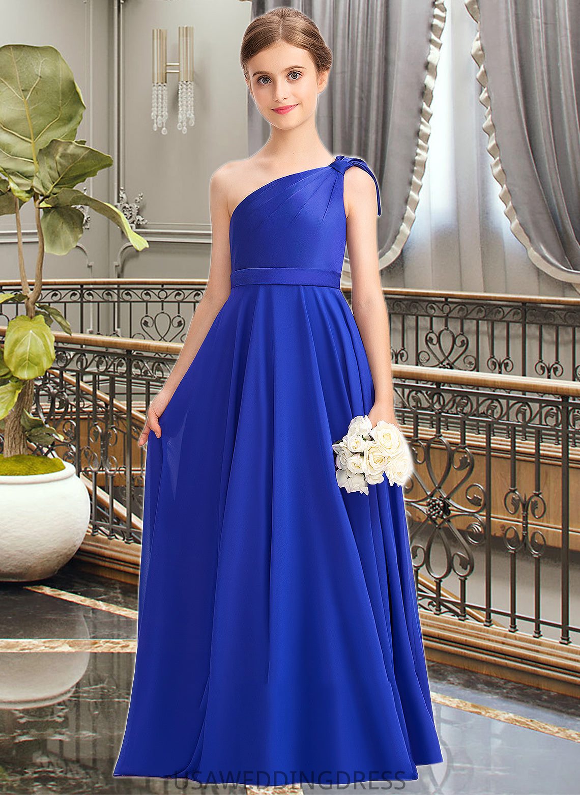 Sharon A-Line One-Shoulder Floor-Length Chiffon Charmeuse Junior Bridesmaid Dress With Ruffle DSP0013347