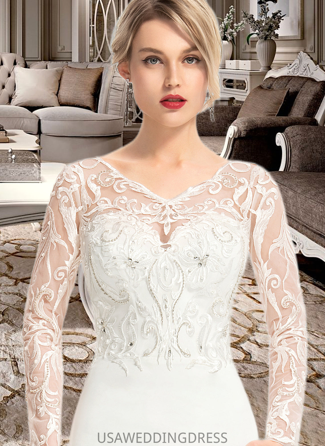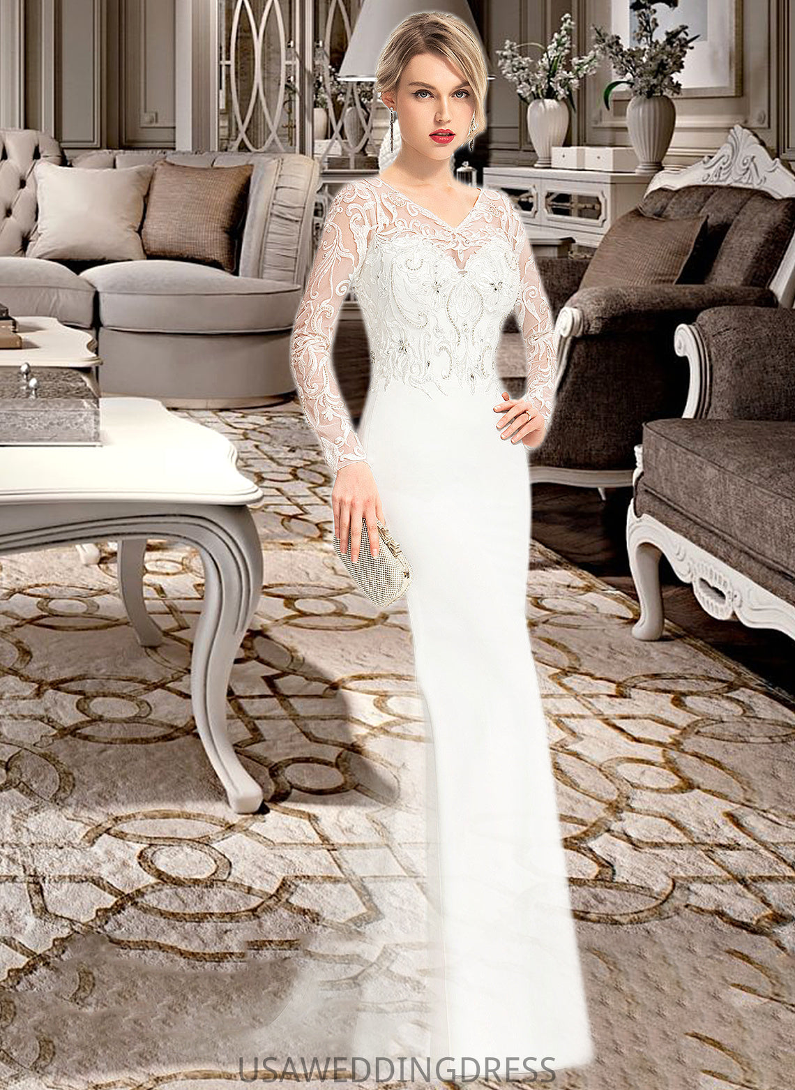 Shea Trumpet/Mermaid V-neck Sweep Train Stretch Crepe Wedding Dress With Beading Sequins DSP0013816