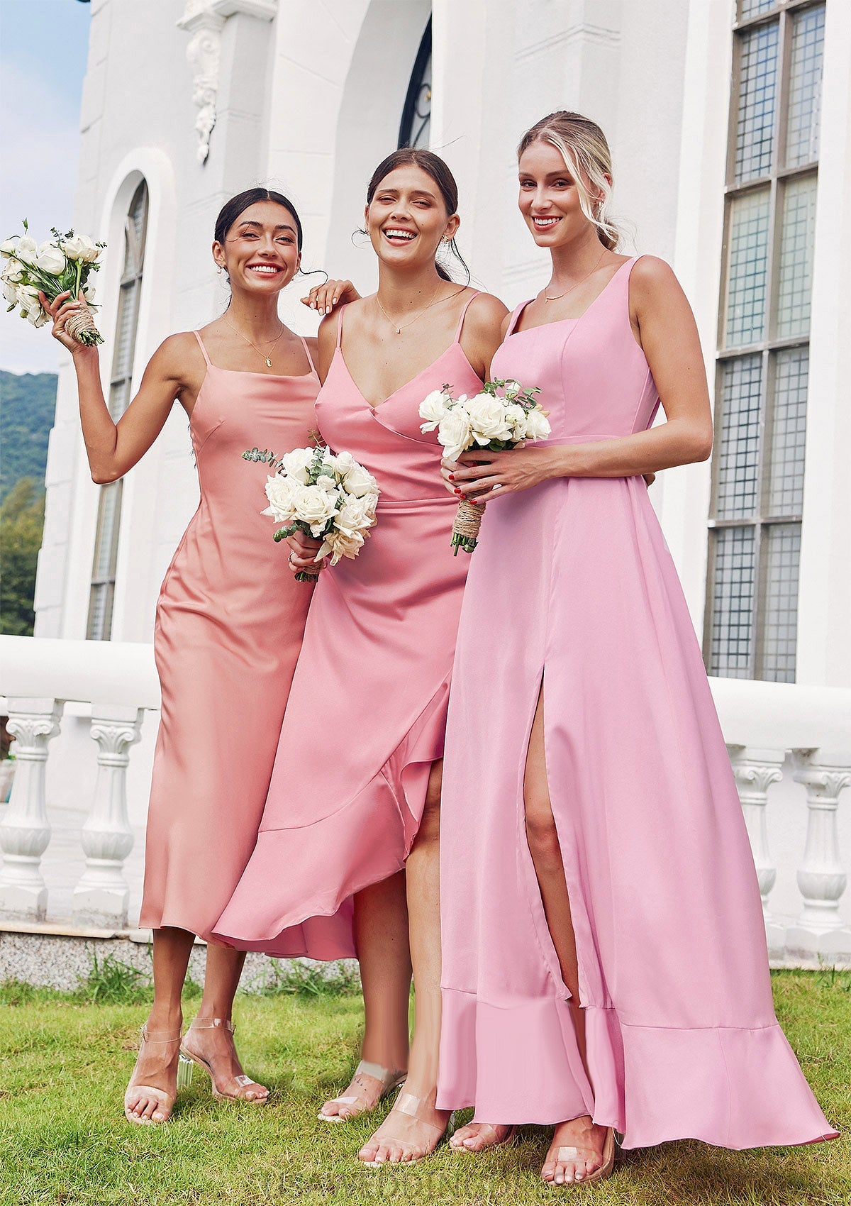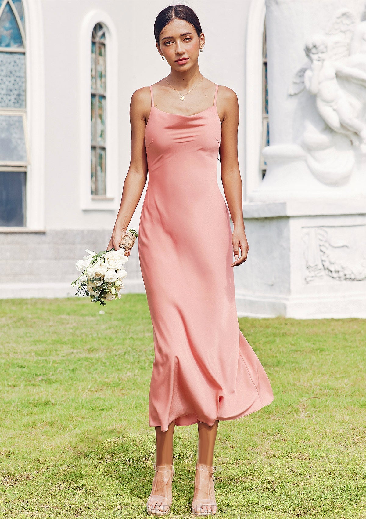 Sheath/Column Cowl Neck Sleeveless Tea-Length Stretch Satin Bridesmaid Dresses Krista DSP0025232