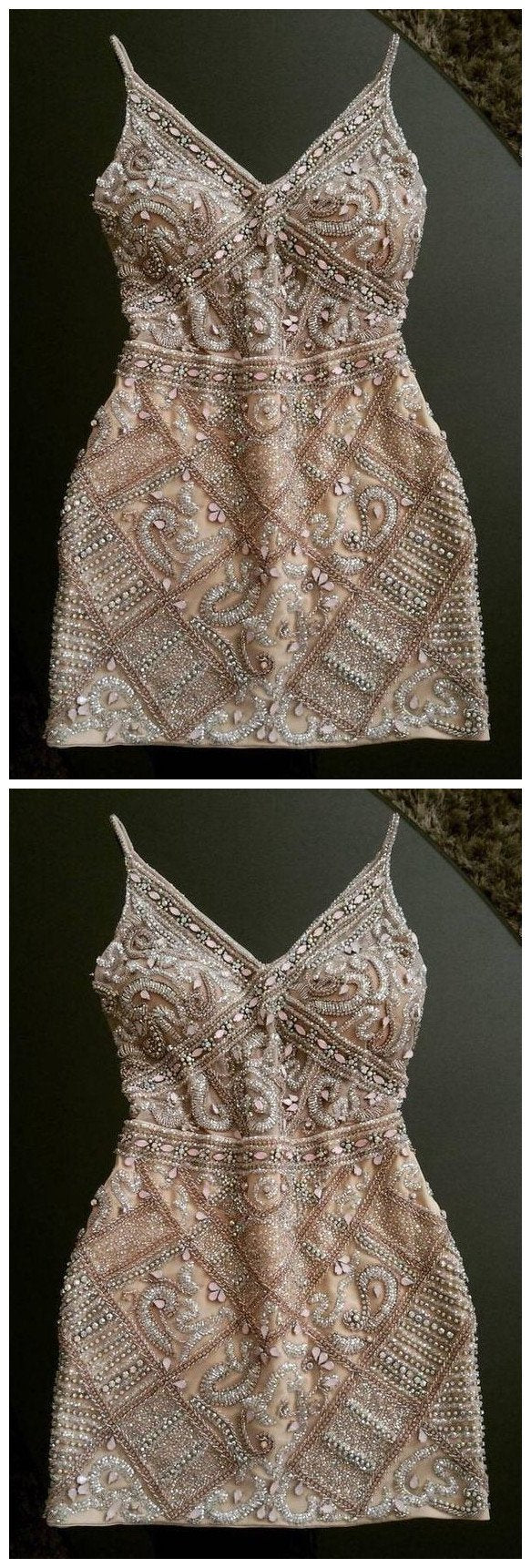 Sheath Spaghetti Lynn Homecoming Dresses Cocktail Straps Beading Short Dress CD828