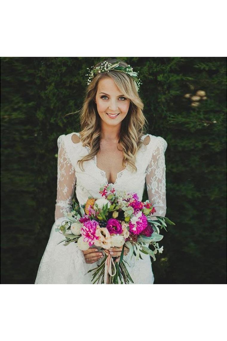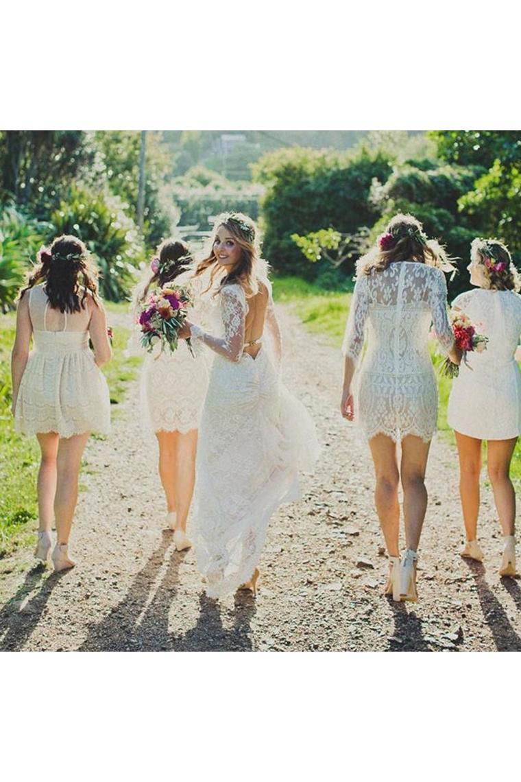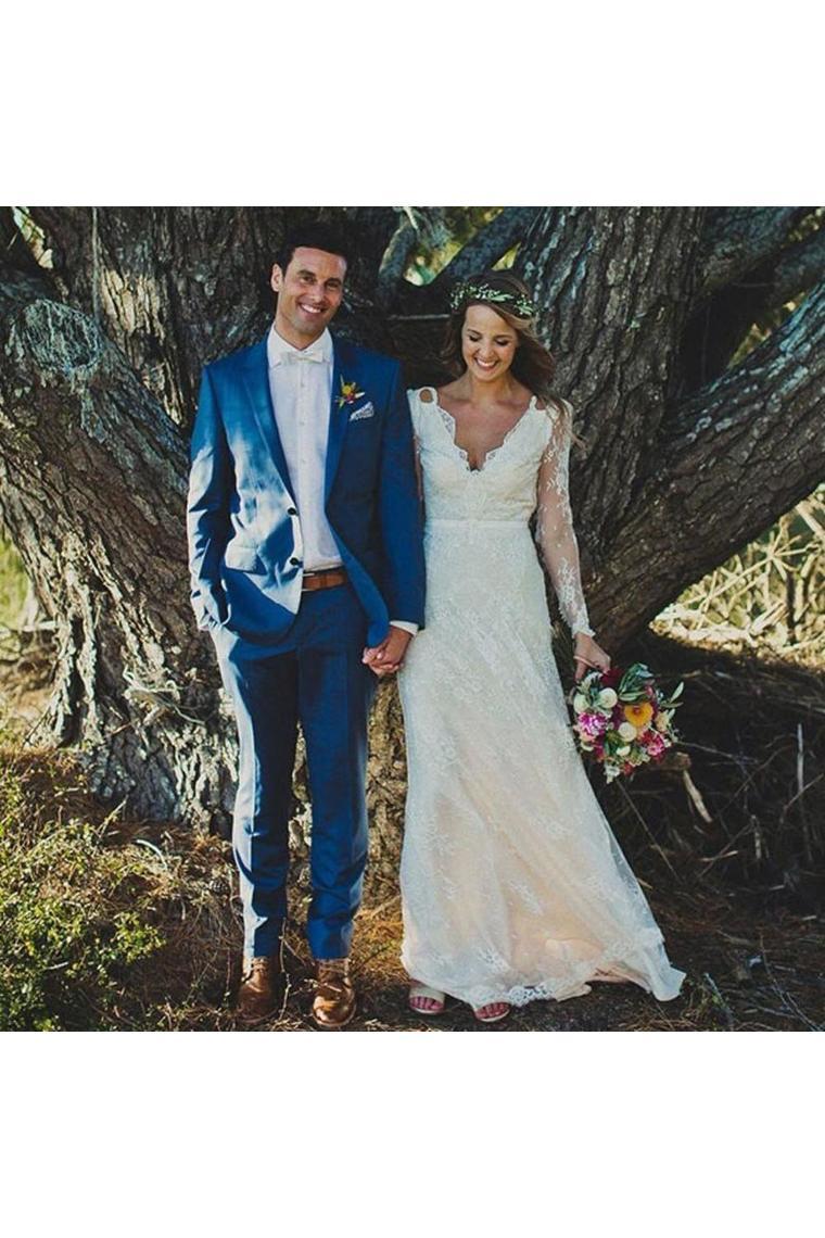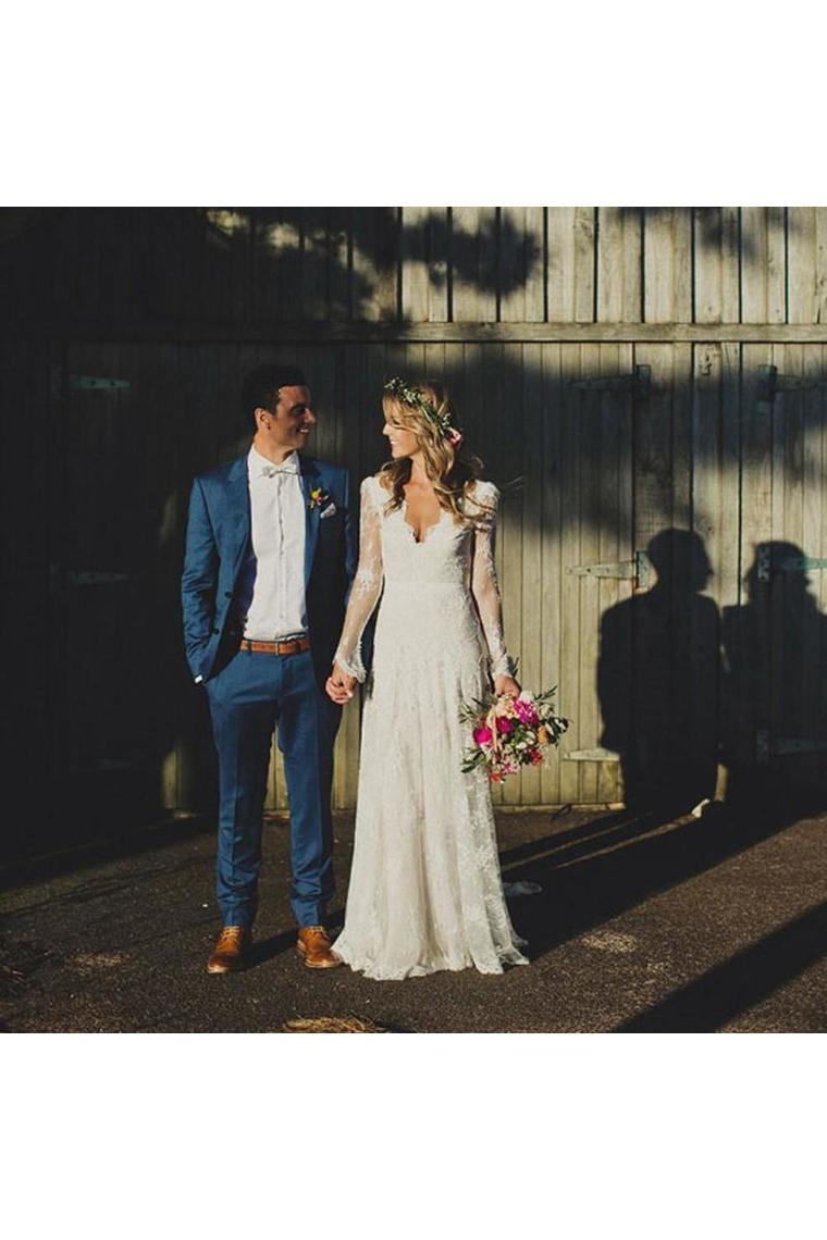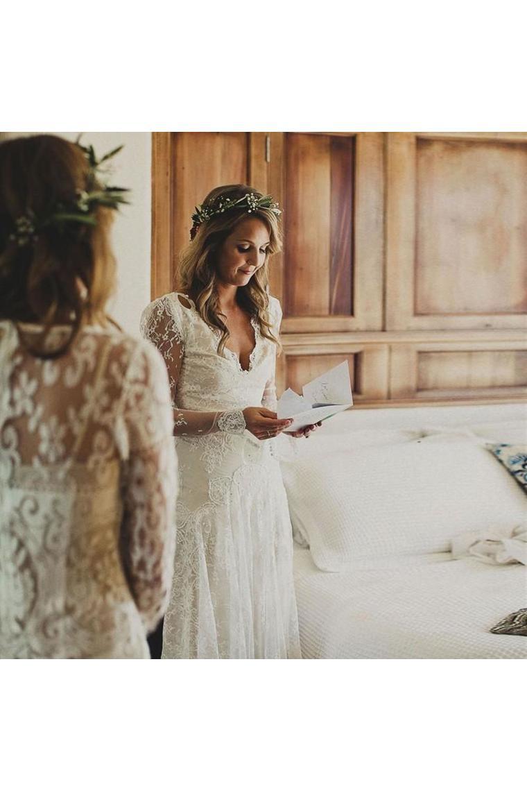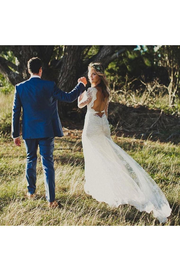 Sheath V-Neck Backless Long Sleeves Lace Wedding Dresses