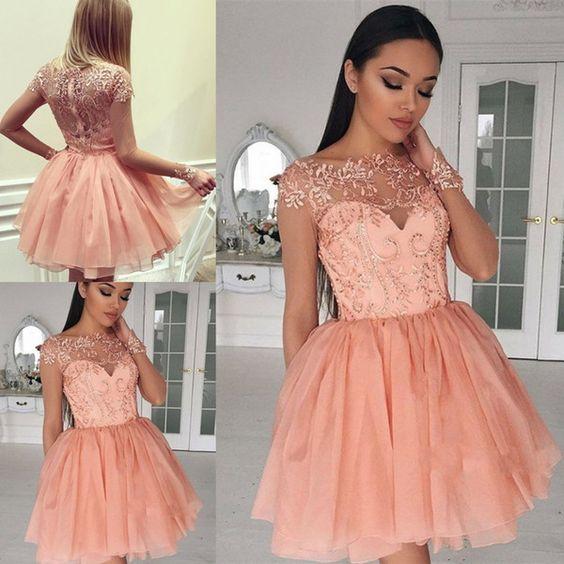 Short Beaded Coral Eliza Homecoming Dresses CD225