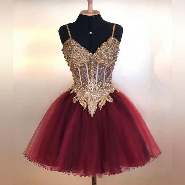 Short Lace Saniya Homecoming Dresses Burgundy Beads Gowns CD21528