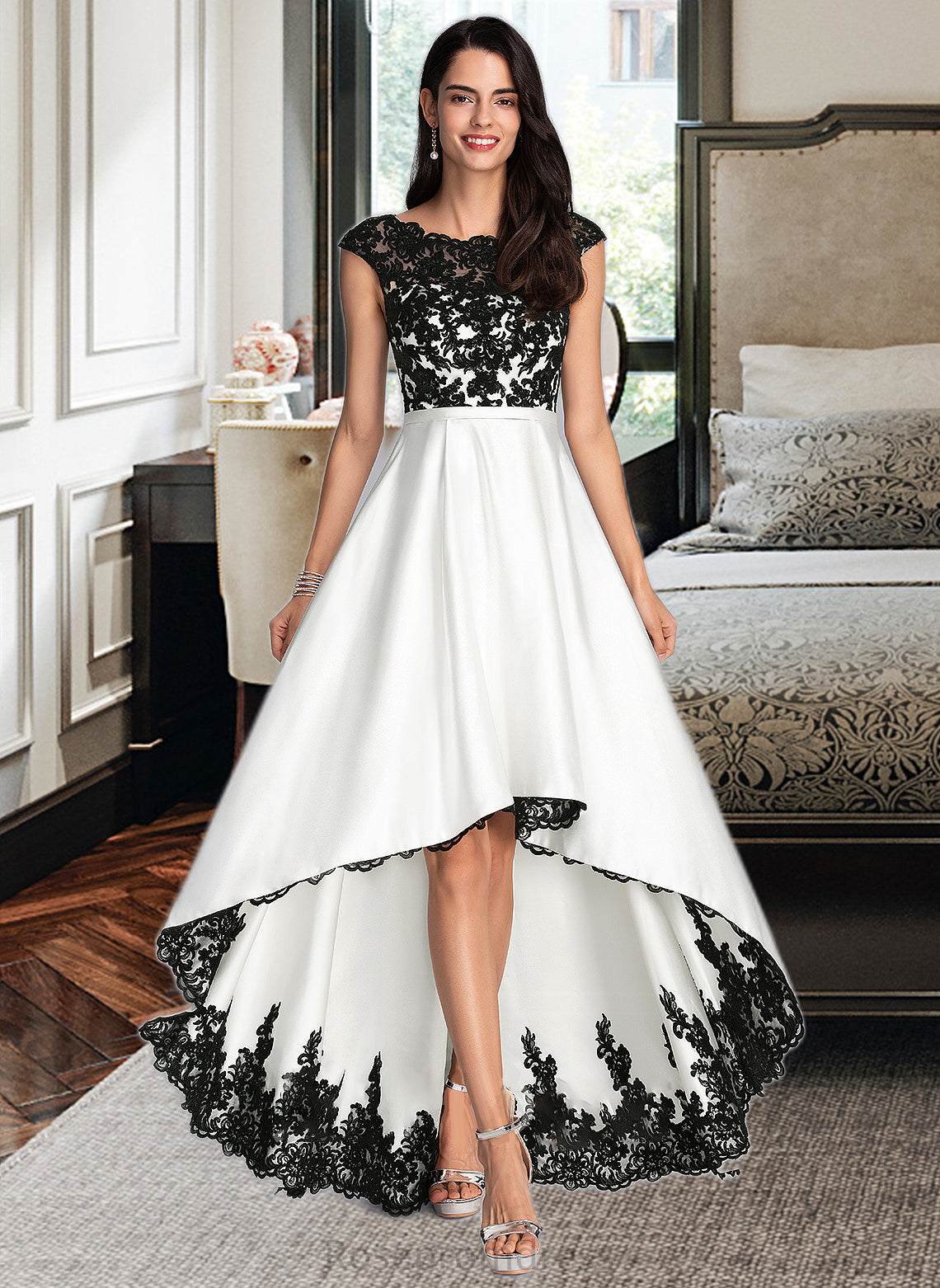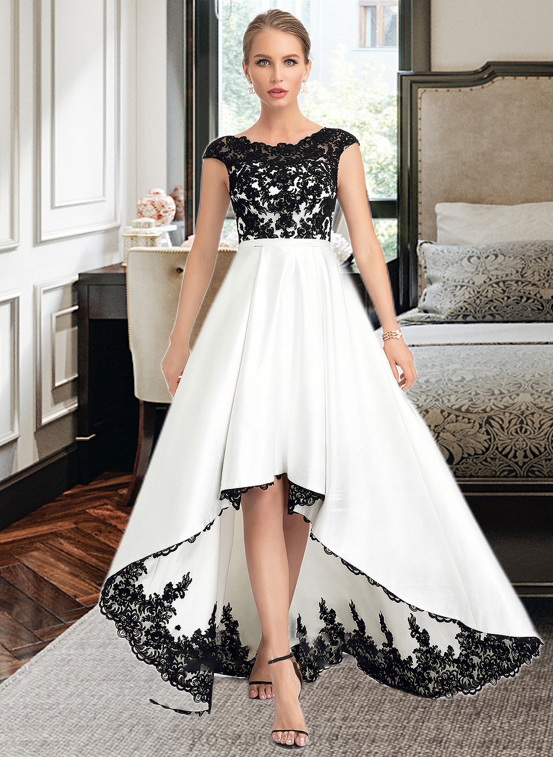 Shyanne Ball-Gown/Princess Scoop Neck Asymmetrical Satin Wedding Dress SRSP0013728
