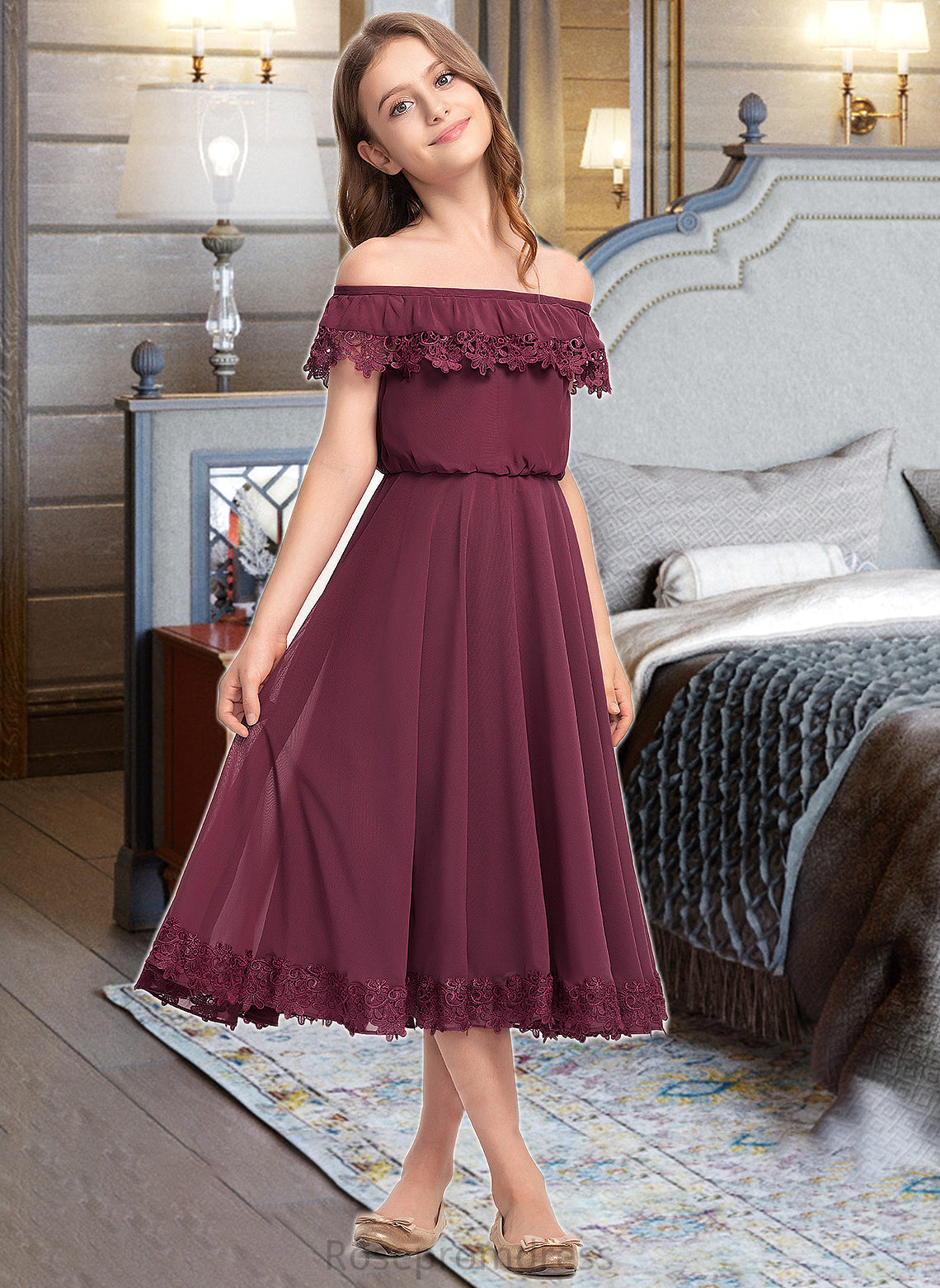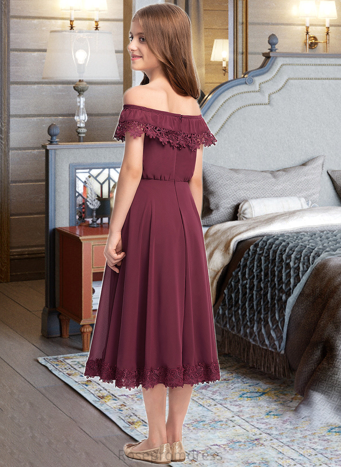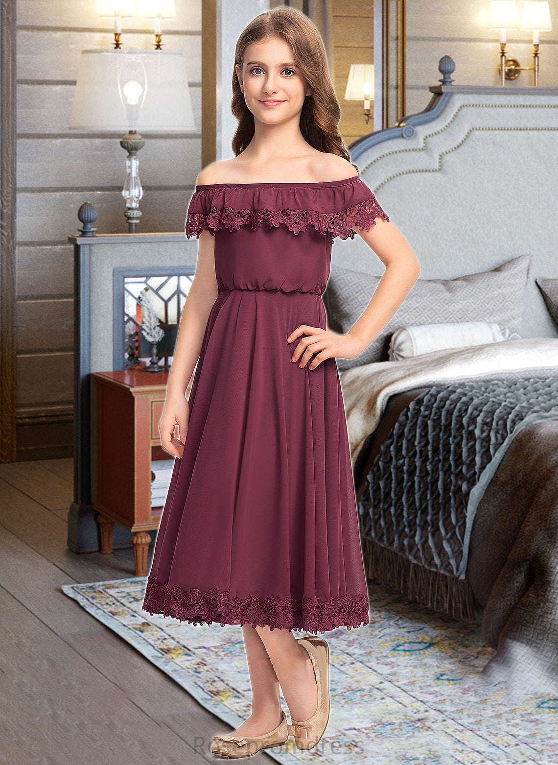 Shyla A-Line Off-the-Shoulder Tea-Length Chiffon Lace Junior Bridesmaid Dress SRSP0013505