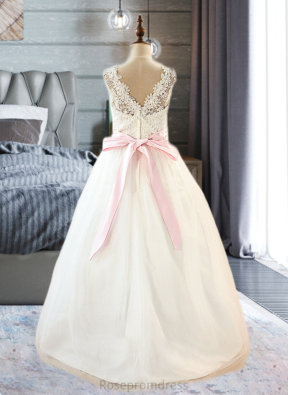 Shyla Ball-Gown/Princess Scoop Neck Floor-Length Tulle Junior Bridesmaid Dress With Sash Beading Bow(s) SRSP0013545