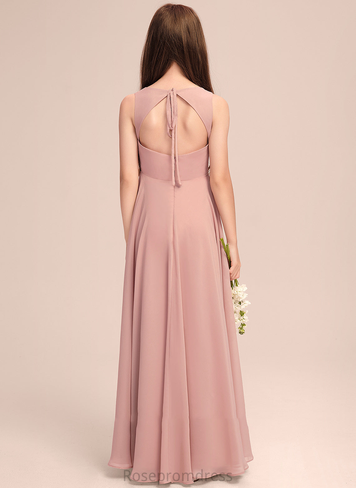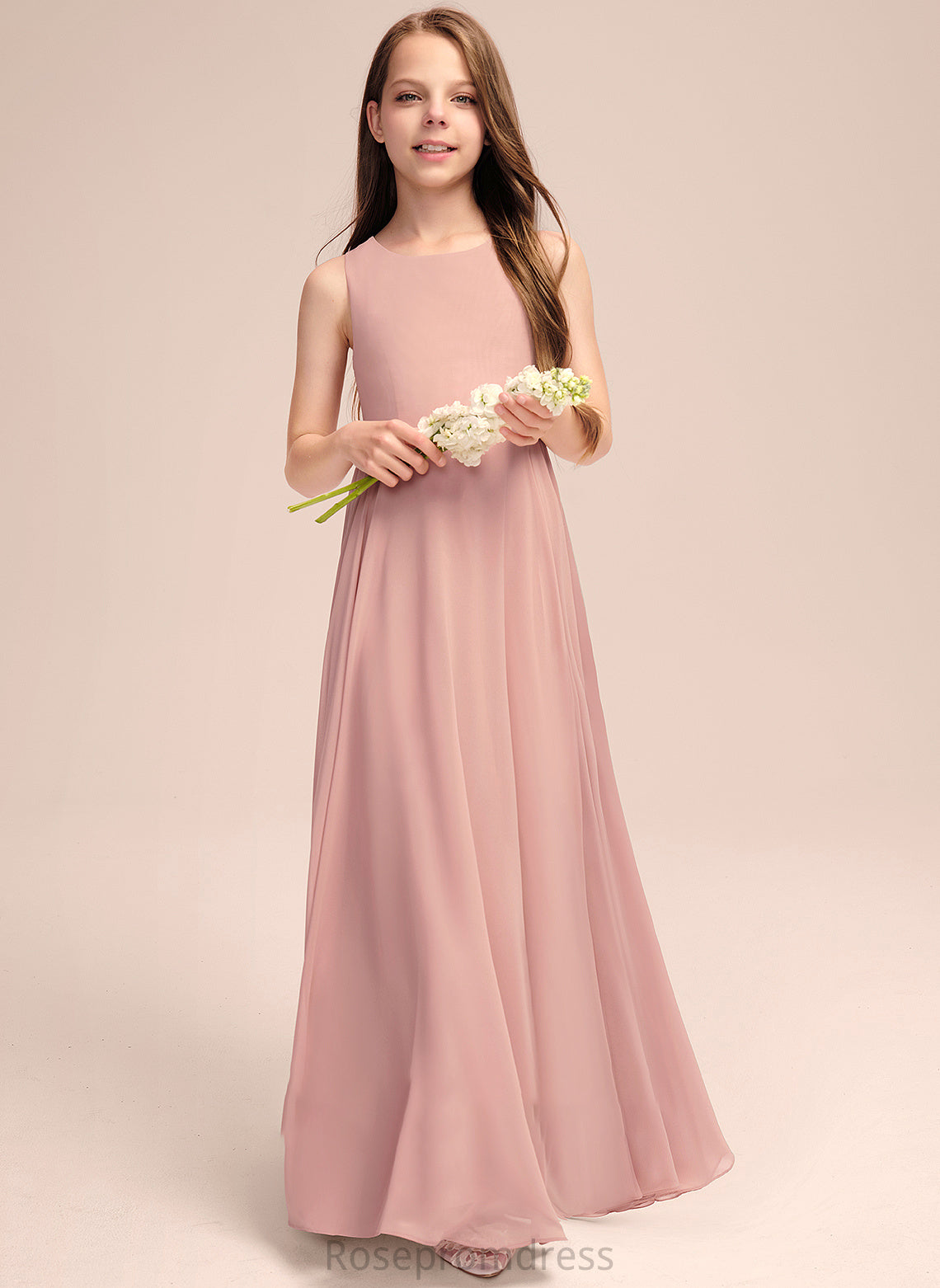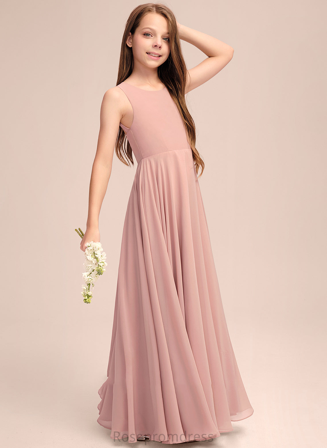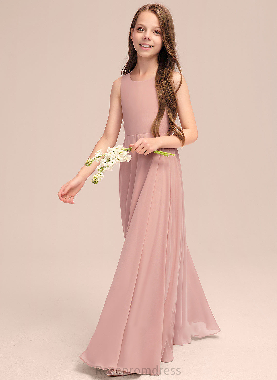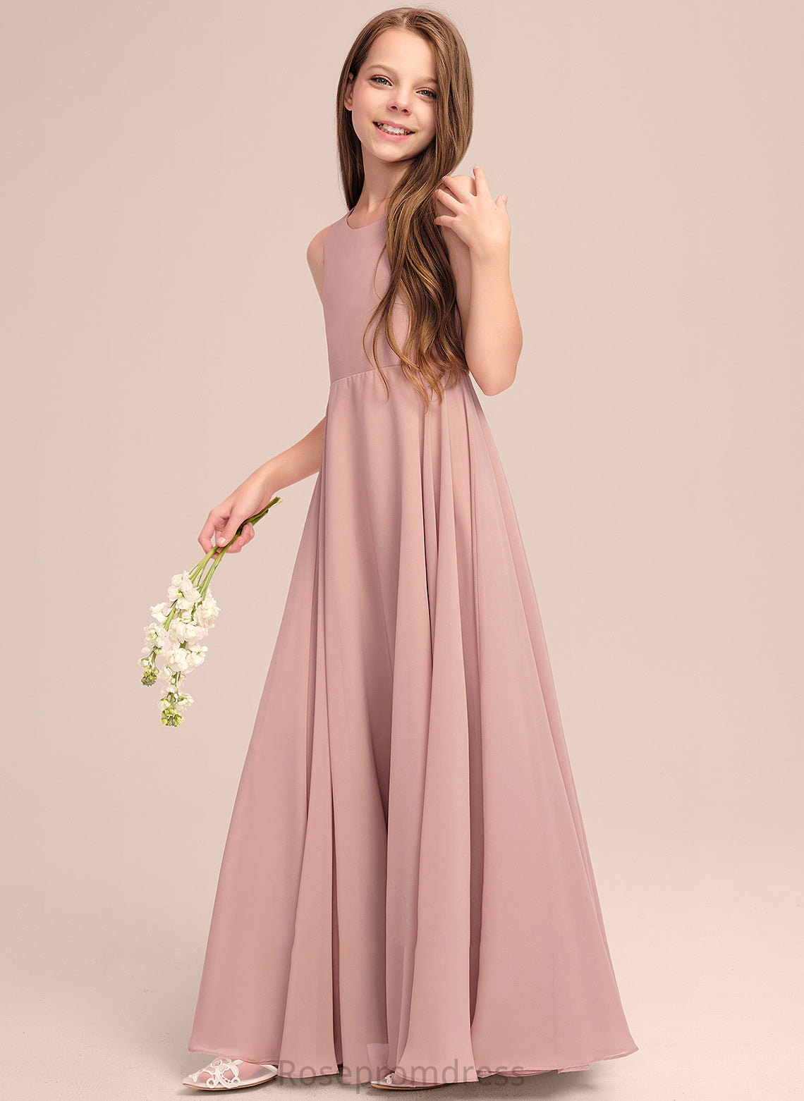 Silvia A-Line With Floor-Length Junior Bridesmaid Dresses Scoop Chiffon Bow(s) Neck