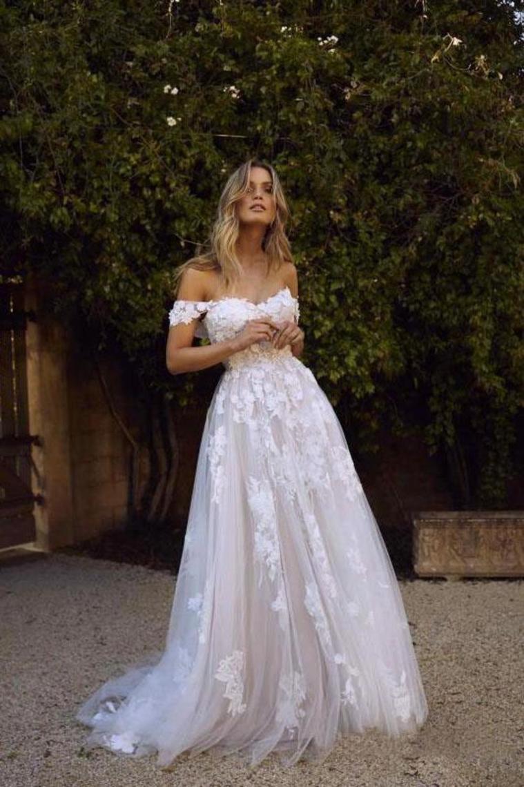 Simple A-Line Off The Shoulder White Beach Wedding Dresses