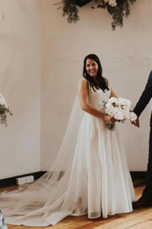 Simple Elegant A Line V Neck Ivory Wedding Dresses, Long Wedding Gowns SRS15532